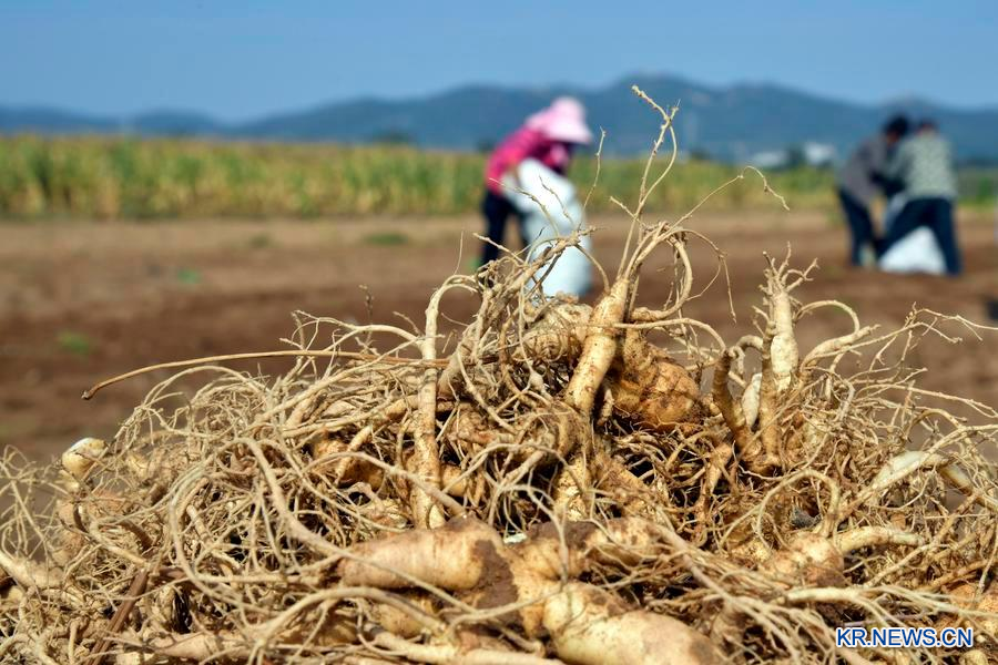 원덩구 서양삼 재배 기지에서 수확한 서양삼. (사진/신화통신)