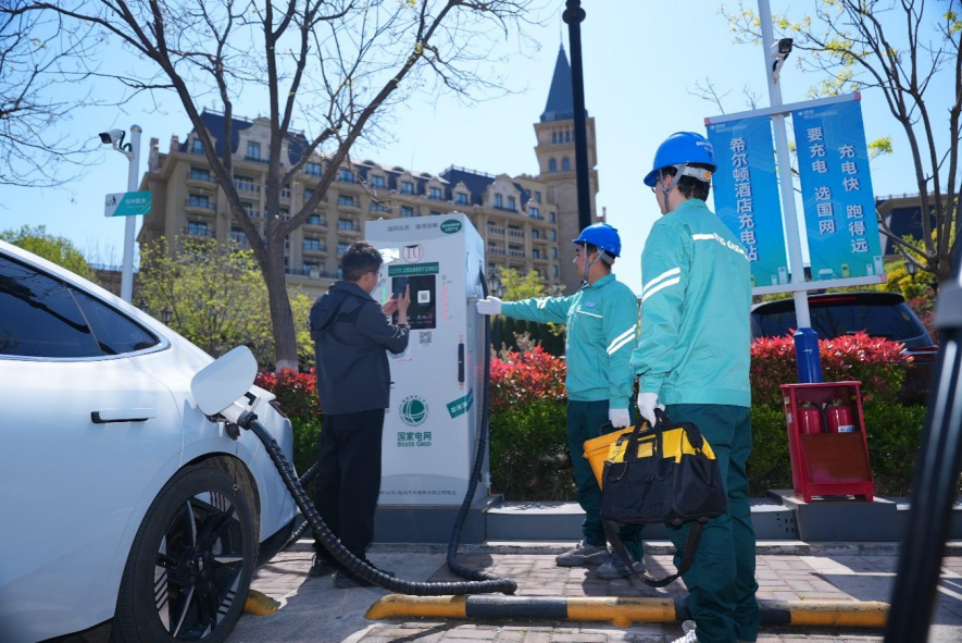 国网青岛供电公司员工服务新能源车主安全便捷充电