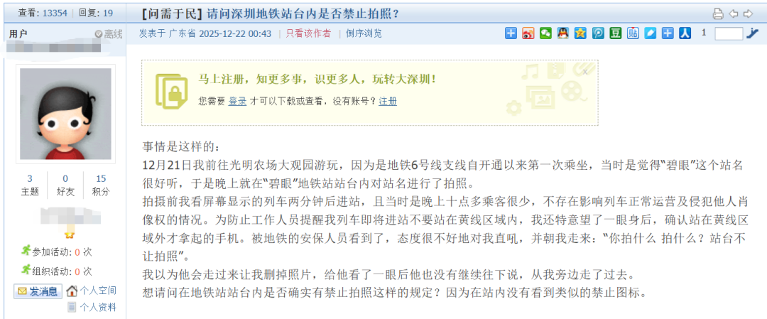 “站台不让拍照”!乘客遭安保高声呵斥,深圳地铁回应