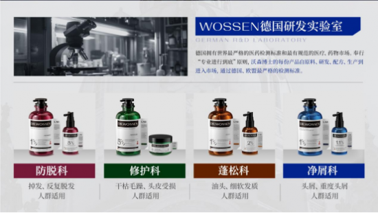 基于在皮肤医学领域的长期深耕与超100万例头皮临床案例的积累,沃森博士DR.WOSSEN深入洞察到市场对高端精准头皮护理的迫切需求,正式推出“德国医学头皮护理实验室线”,旨在以严谨的德国实验室标准,填补该领域的专业空白。产品线秉持科学专攻头皮健康的核心理念,深度融合德国实验室基因与市场需求,构建“从实验室到消费者”的全链路医学解决方案。