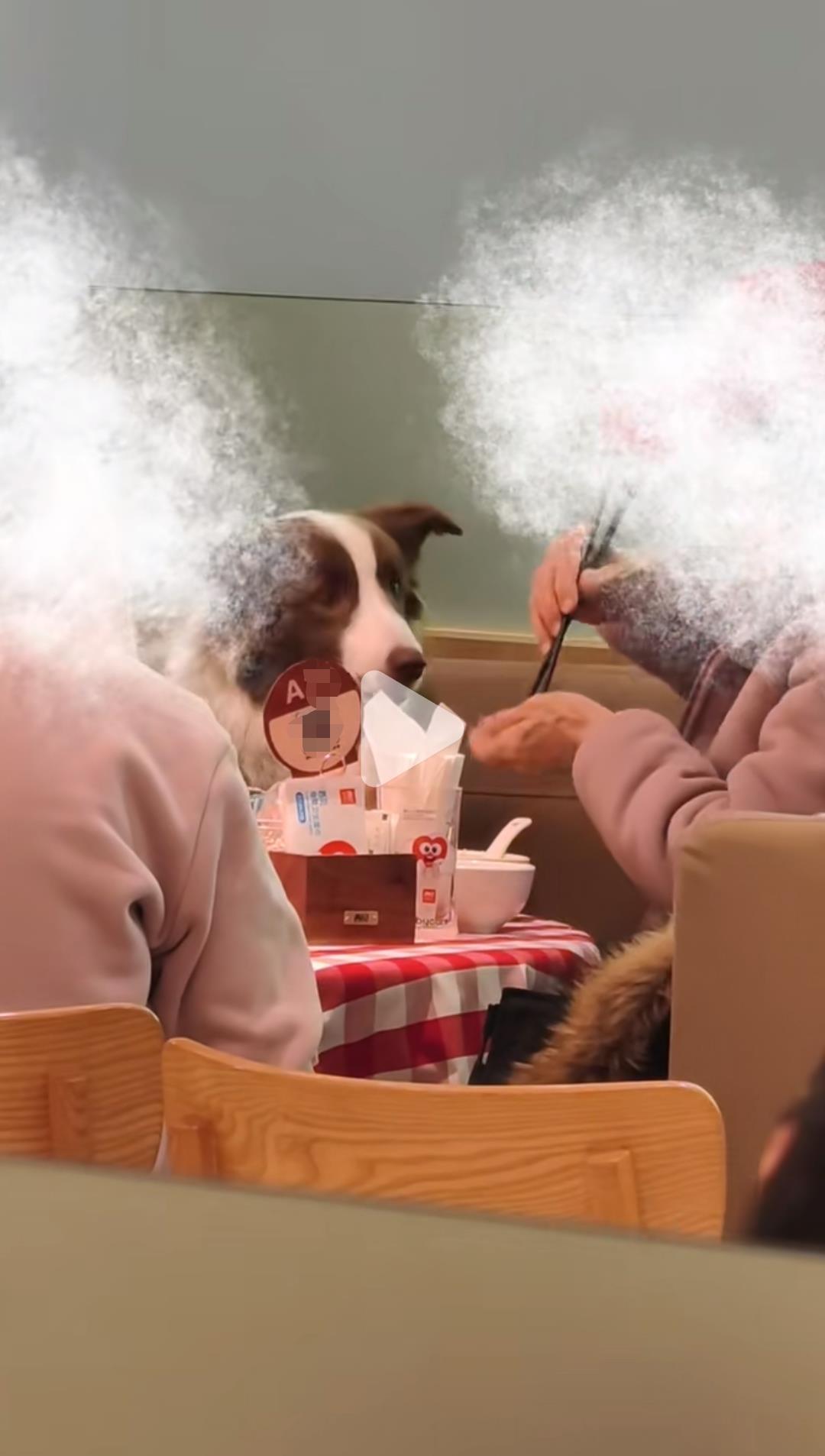 宠物狗在西贝门店座位上用餐 视频截图