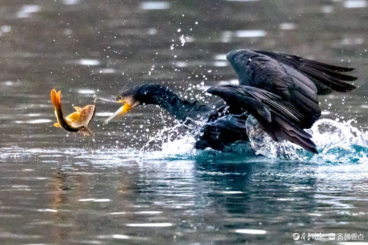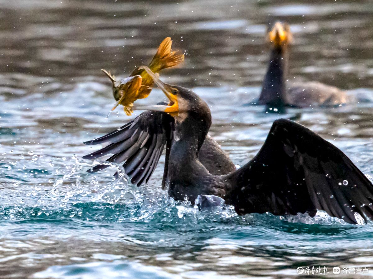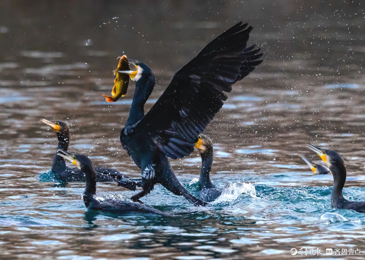 济南大明湖景区的小东湖,鸬鹚争抢捕鱼的场面精彩纷呈
