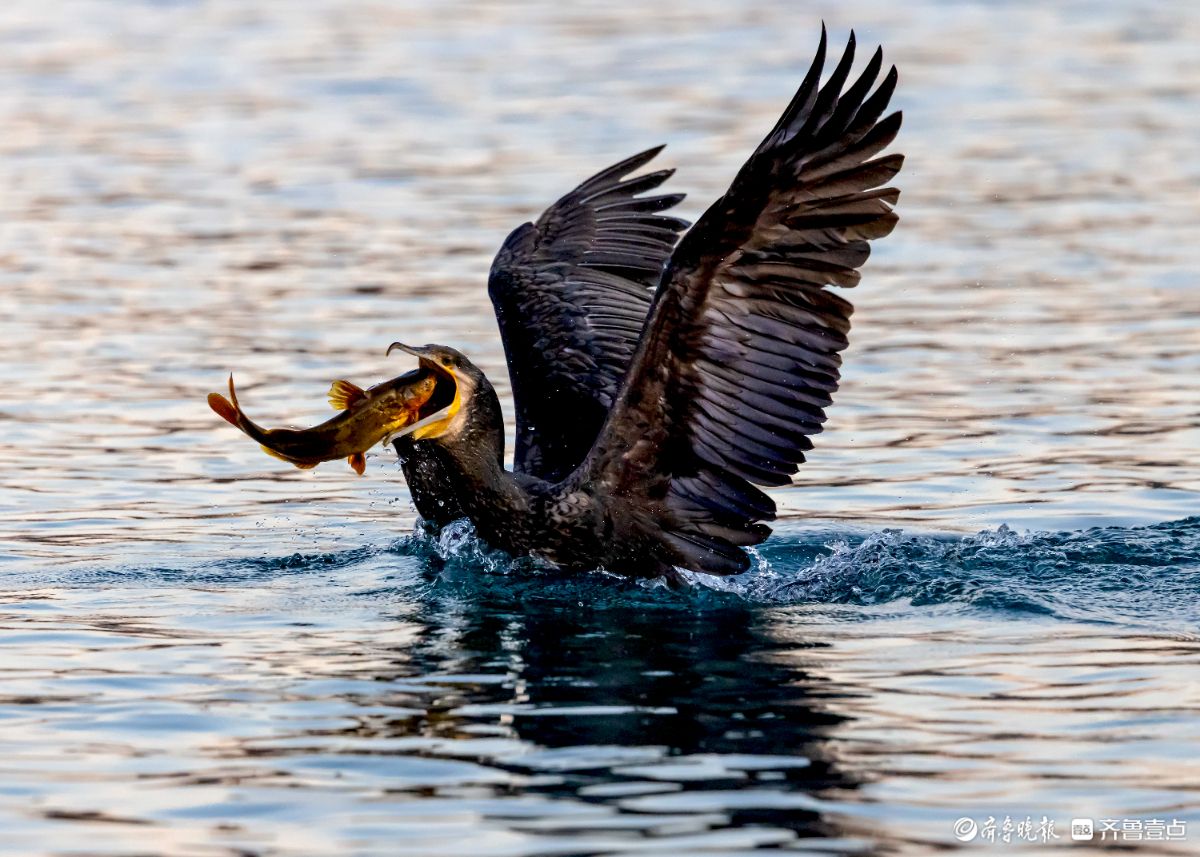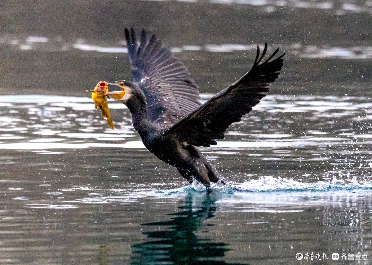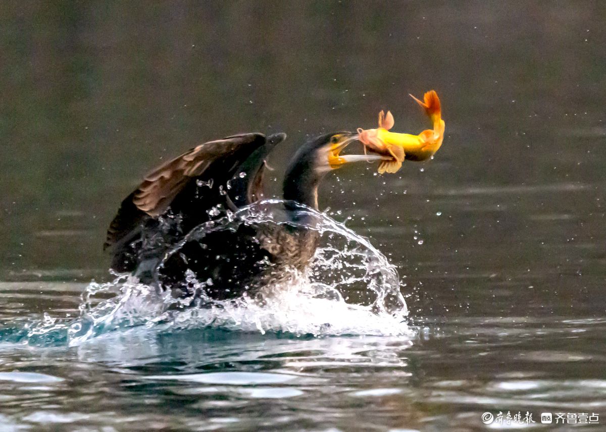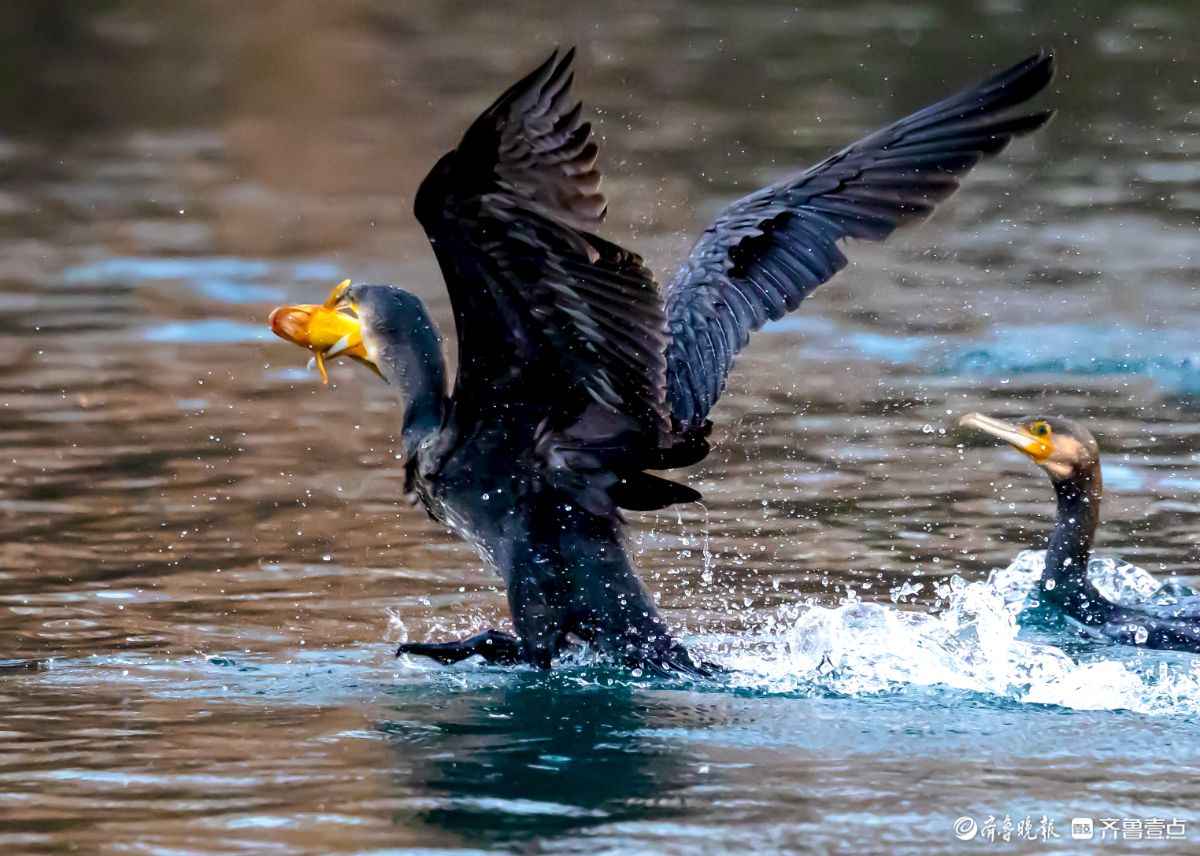 济南大明湖景区的小东湖,鸬鹚争抢捕鱼的场面精彩纷呈