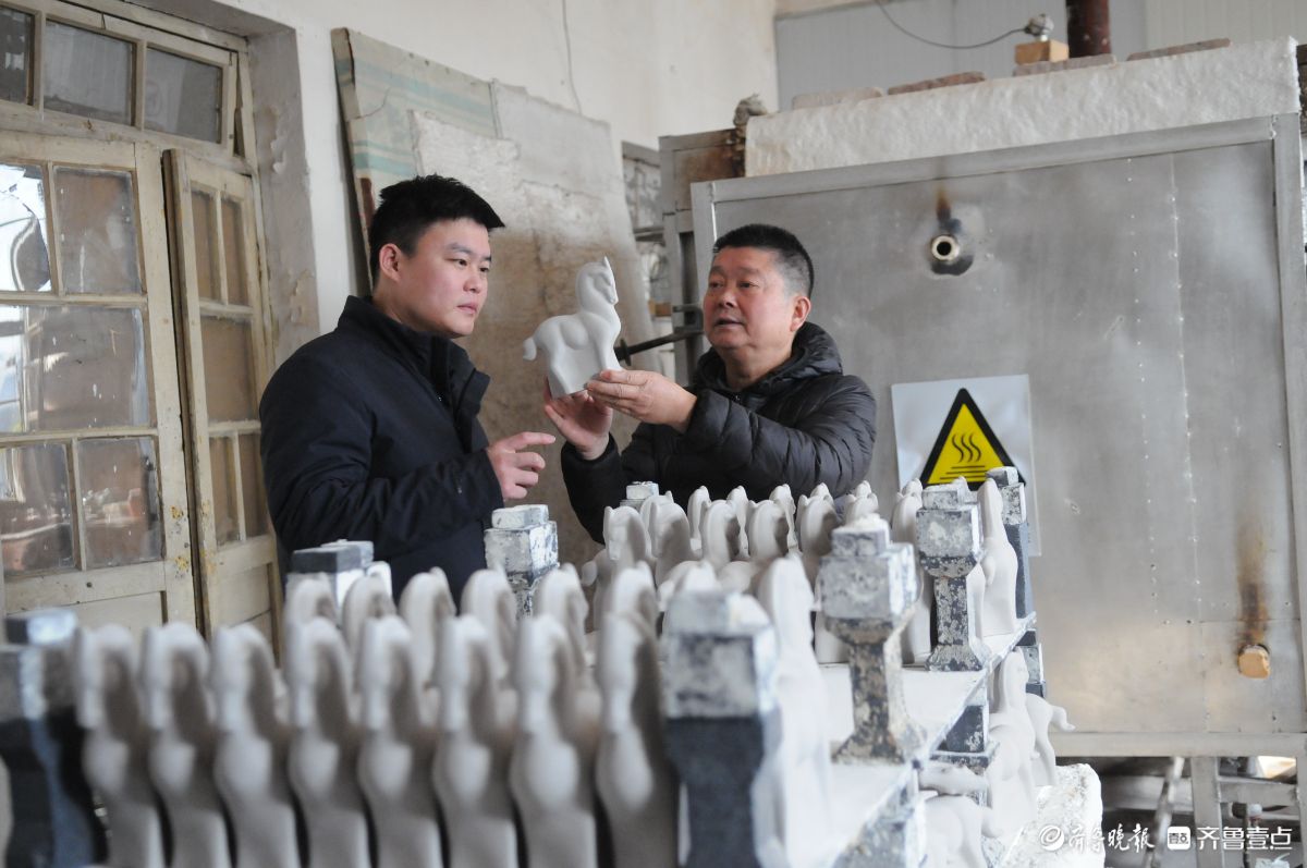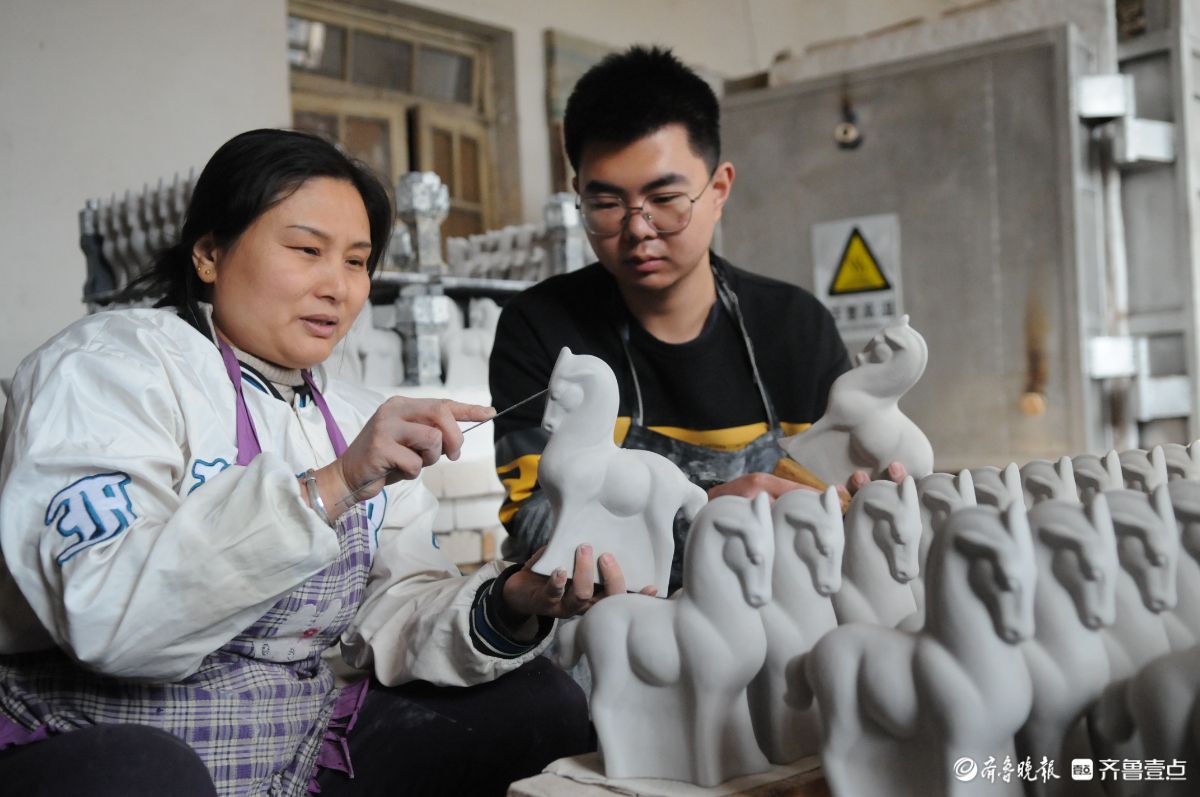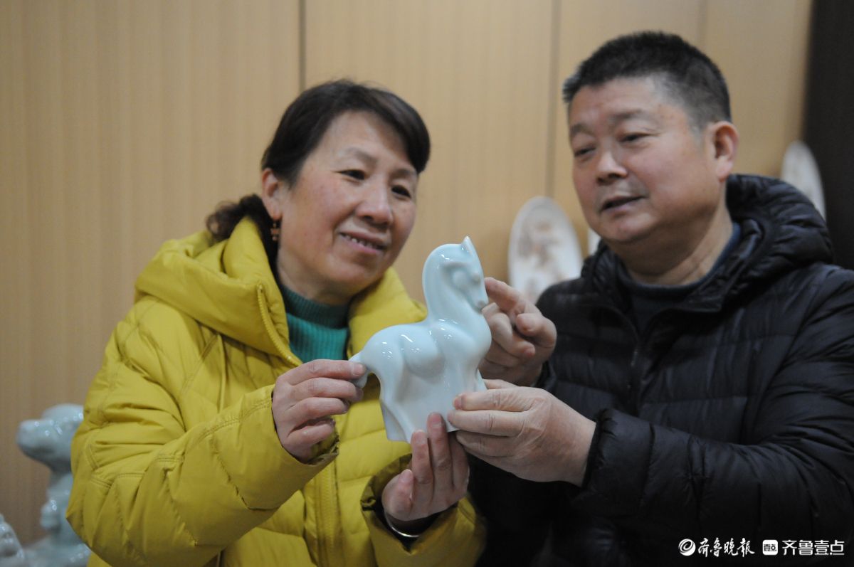 1月12日,淄博永强文化艺术有限公司技师正在给鲁青瓷生肖马修坯洗坯。随着农历马年的临近,鲁青瓷生肖马订单持续升温,工人加班加点生产,确保市场供应。发源于淄博市淄川区昆仑镇的鲁青瓷刻绘,是淄博市级非物质文化遗产。闫盛霆摄