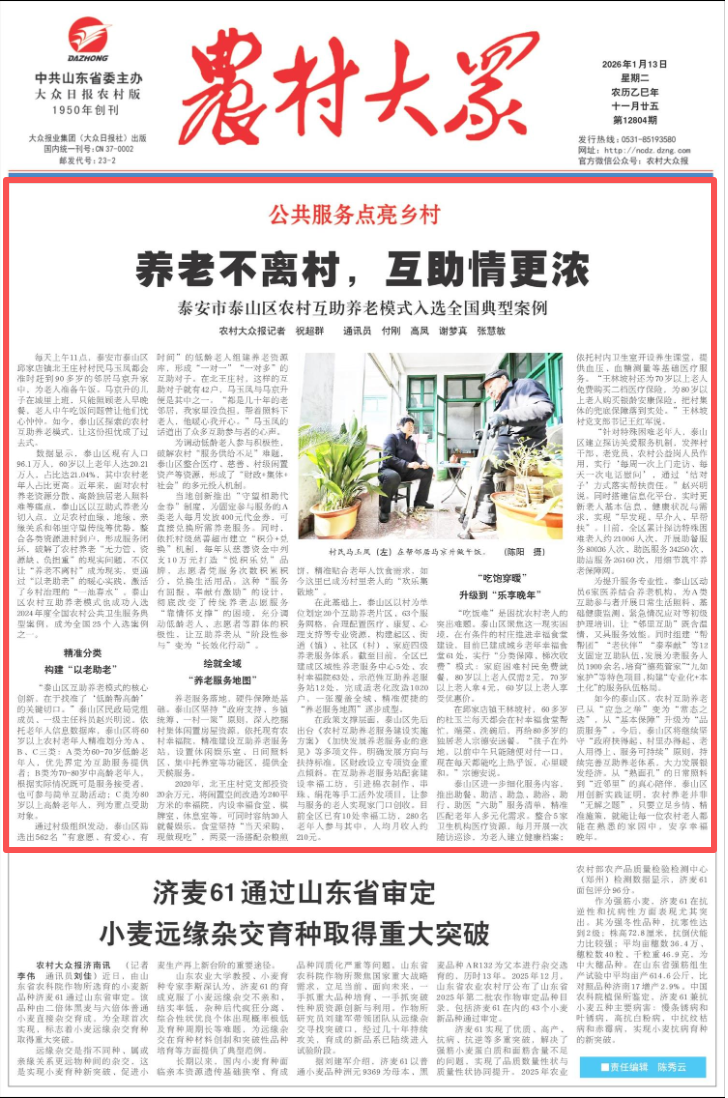 如今的泰山区,农村互助养老已从“应急之举”变为“常态之选”,从“基本保障”升级为“品质服务”。今后,泰山区将继续坚守“政府扶得起、村里办得起、老人用得上、服务可持续”原则,持续完善互助养老体系,大力发展银发经济。从“熟面孔”的日常照料到“近邻里”的真心陪伴,泰山区用创新实践证明,农村养老并非“无解之题”,只要立足乡情、精准施策,就能让每一位农村老人都能在熟悉的家园中,安享幸福晚年。