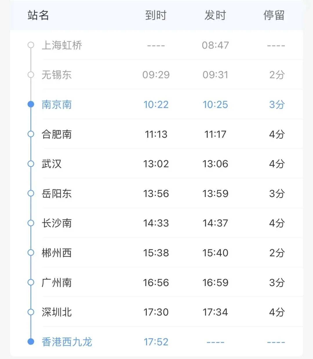 上午在南京喝鸭血粉丝汤,晚上在香港吃云吞面,高铁直达!1月13日起,南京→香港直达高铁正式开售。10:22上车17:52抵达,7个多小时的旅程,从梧桐树影到维港灯火,高铁轻松实现“游港计划”。