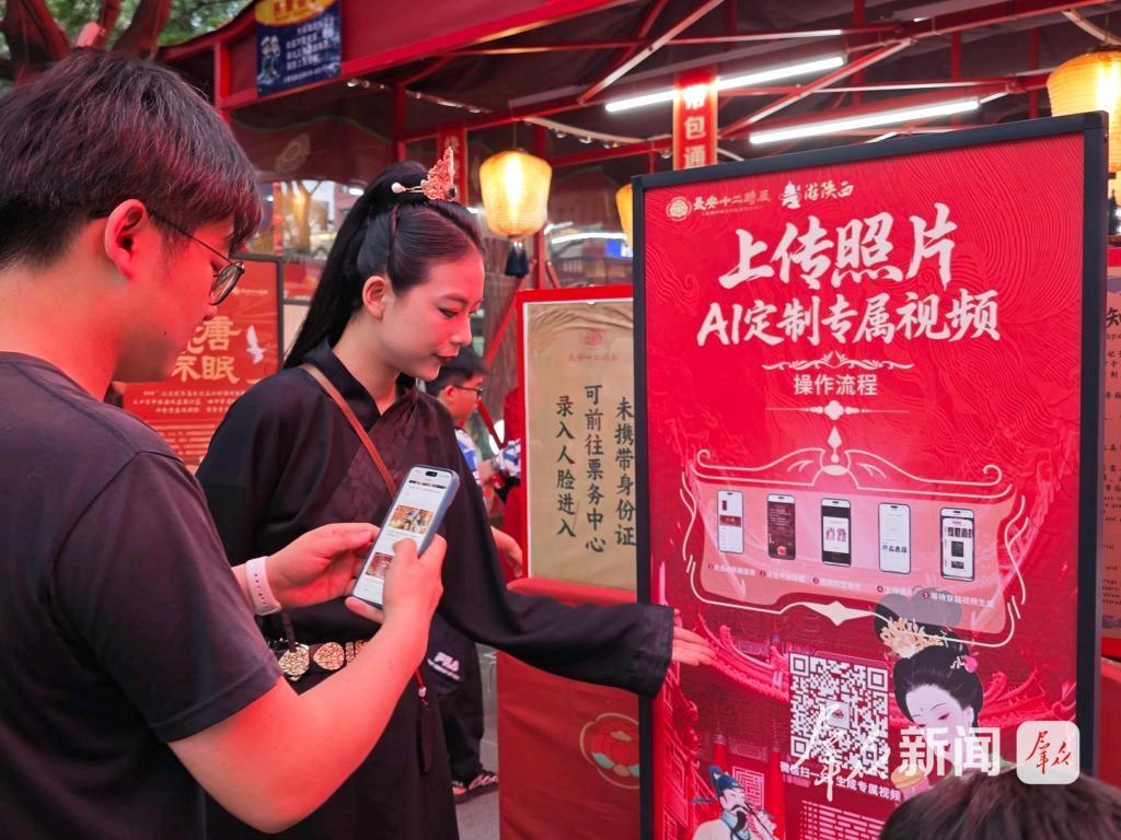 在长安十二时辰主题街区AI汉服体验设备前,游客仅需站立数秒,系统便通过计算机视觉生成专属唐装形象,背景自动匹配实景拍摄……