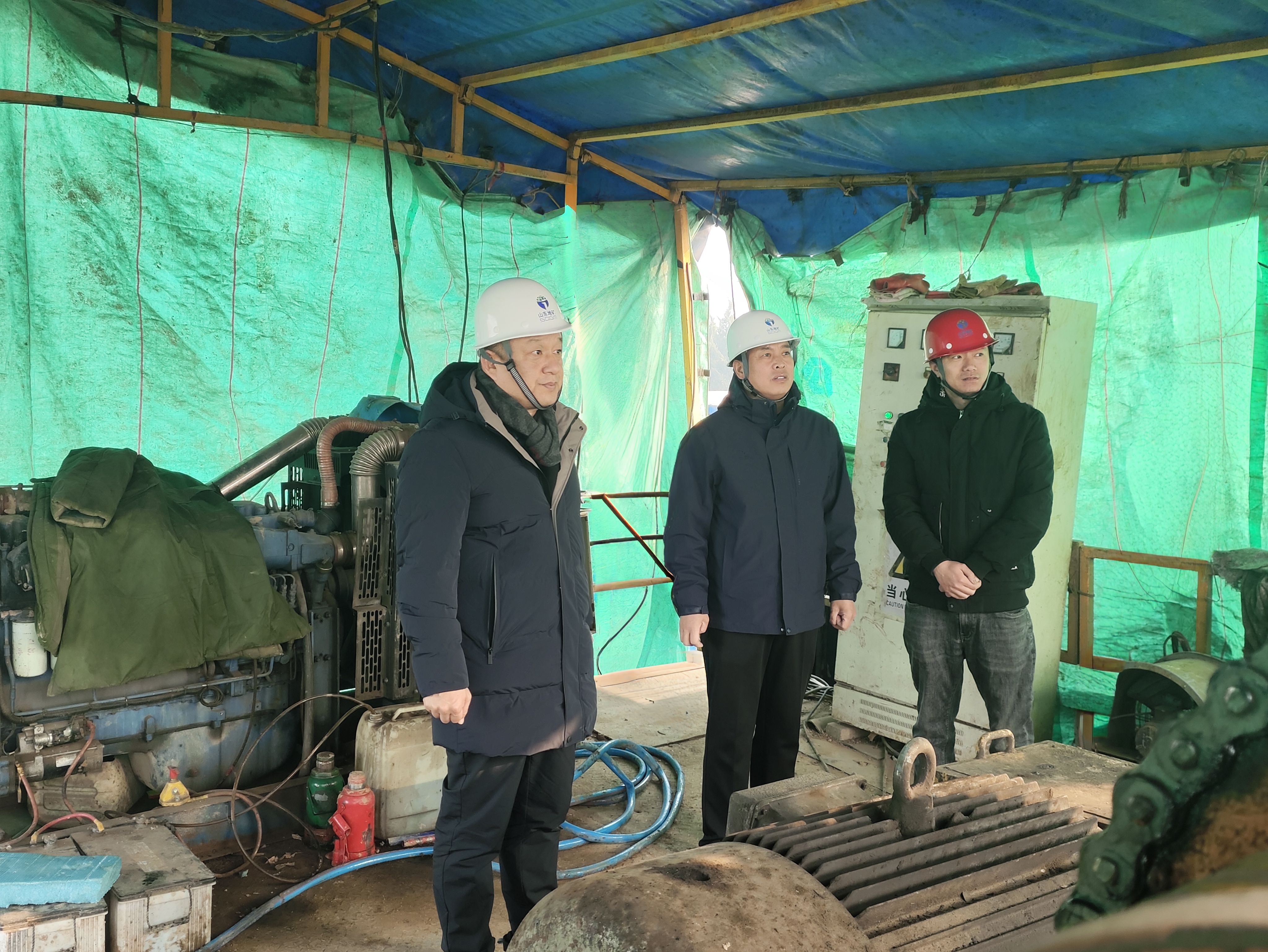 1月6日,山东省地矿局五队党委委员、工会主席崔大勇带队赴德州夏津、齐河及济南等野外项目,开展冬季安全生产专项检查,并慰问坚守岗位的一线职工。