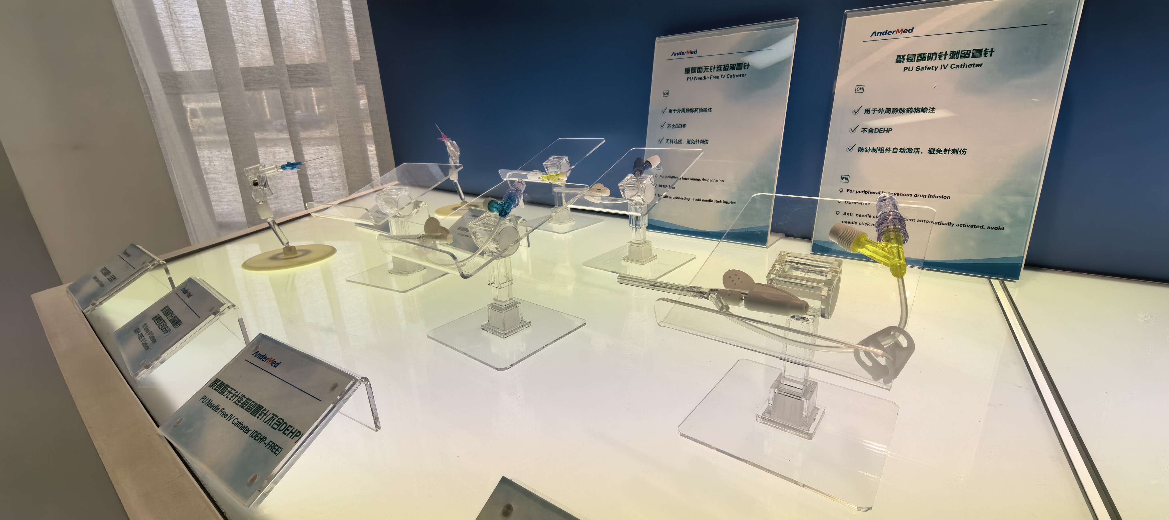 在山东安得医疗用品股份有限公司展厅内,各种血管通路产品、药物输送产品、血液标本采集产品、外科产品等引发记者浓厚兴趣。研发二部经理陈建胜拿着一款留置针产品告诉记者,这款聚氨酯留置针是公司的“夺冠”产品,也是国内第一家生产的,相较于传统留置针它的导管是聚氨酯材质,他还当面做了一个简单实验:将导管掰弯后,可迅速回弹。