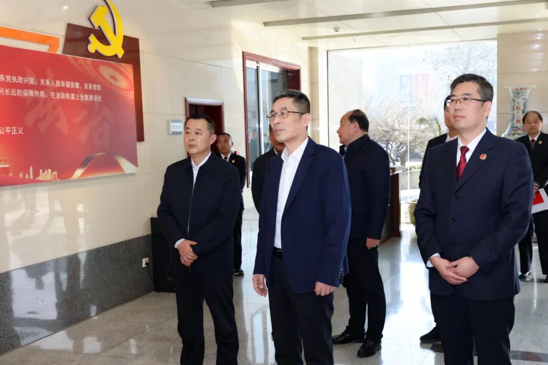 杨红光一行先后参观了市中区检察院检察理念展区、新建档案室、新时代展廊、数智中心等,随后召开座谈会,听取了焦武峰关于2025年度检察工作情况汇报。