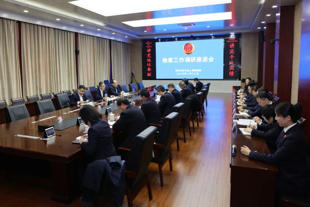 2026年1月12日,枣庄市人民检察院党组书记、代理检察长杨红光到市中区人民检察院调研检察工作情况,枣庄市检察院党组成员、副检察长冷建明参加调研。市中区委书记韩耀辉,区委常委、办公室主任梁栋,区委常委、政法委书记李家法,市中区人民检察院党组书记、检察长焦武峰陪同。