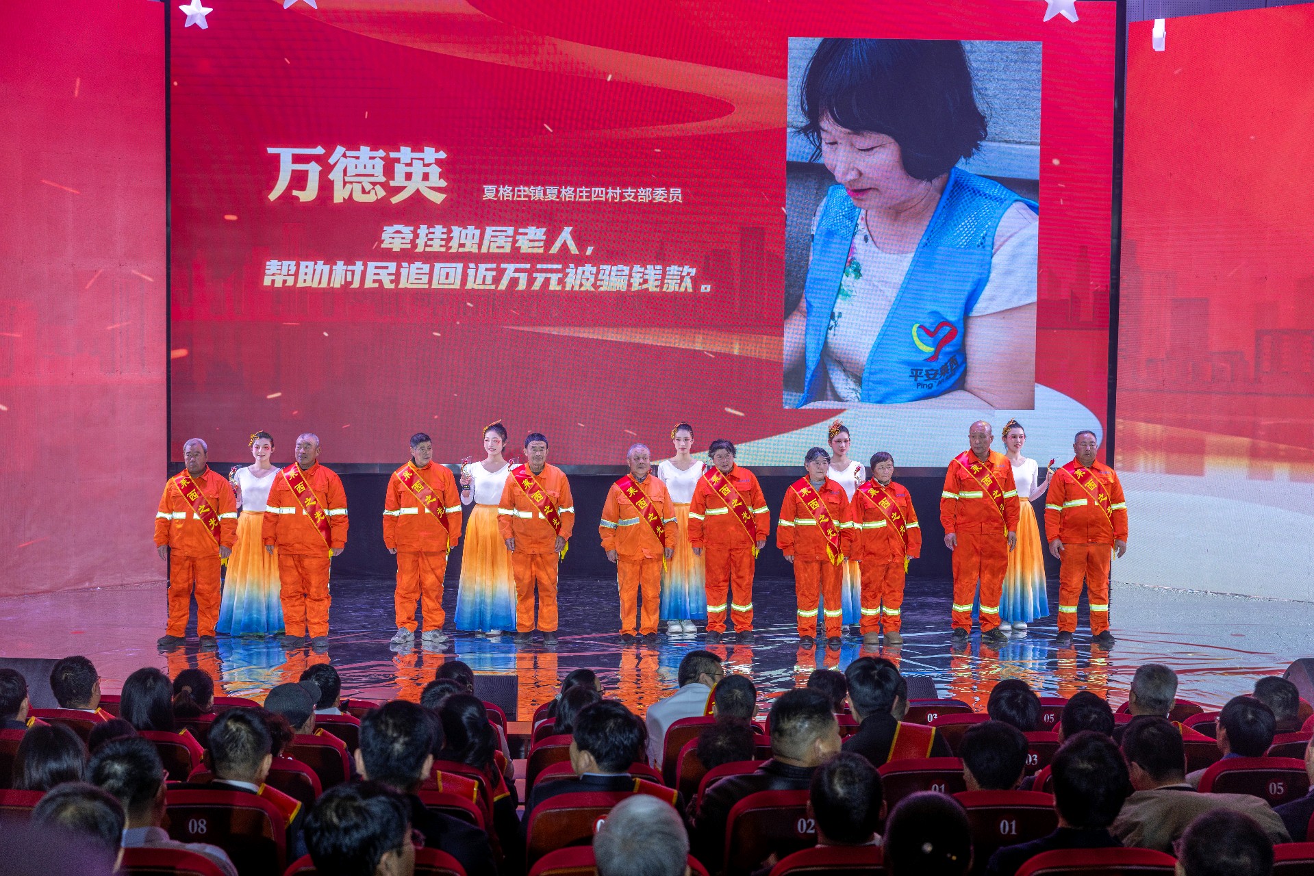(图为“莱西之光”先进典型颁奖晚会现场,向环卫工人颁奖)
