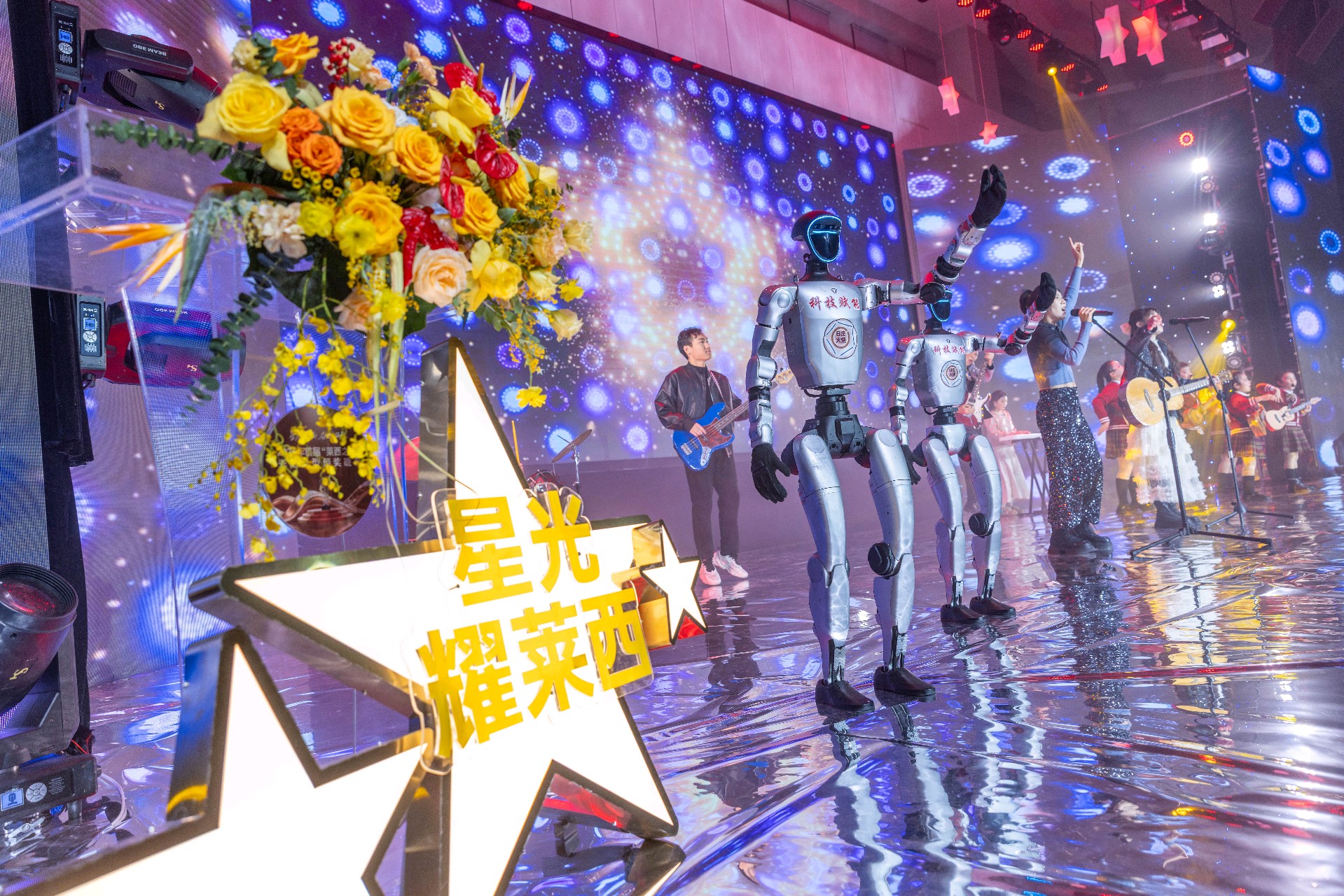 (图为“莱西之光”先进典型颁奖晚会现场,机器人进行表演)