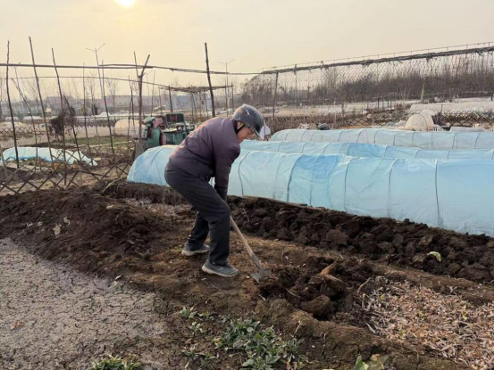 不远处,65岁的魏先生正手握铁锨,在自家菜畦里一下下深耕。记者问及在此种菜体验,魏大爷笑着说:“在这儿种地太省心了!菜田里有现成的水管,用水特别方便,而且水、电费全免费,省了不少事儿。”