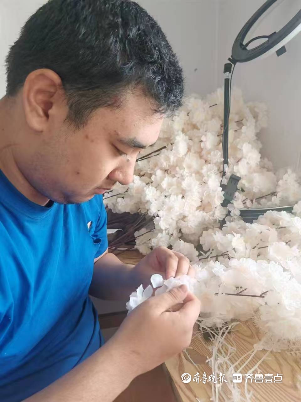 最近,母子俩又接到了头饰花的制作订单,“我经常表扬大帅,说他的仿真花特别漂亮,很多人喜欢。”徐敏星说,每当听到这些,大帅都会格外开心,也更加带劲。