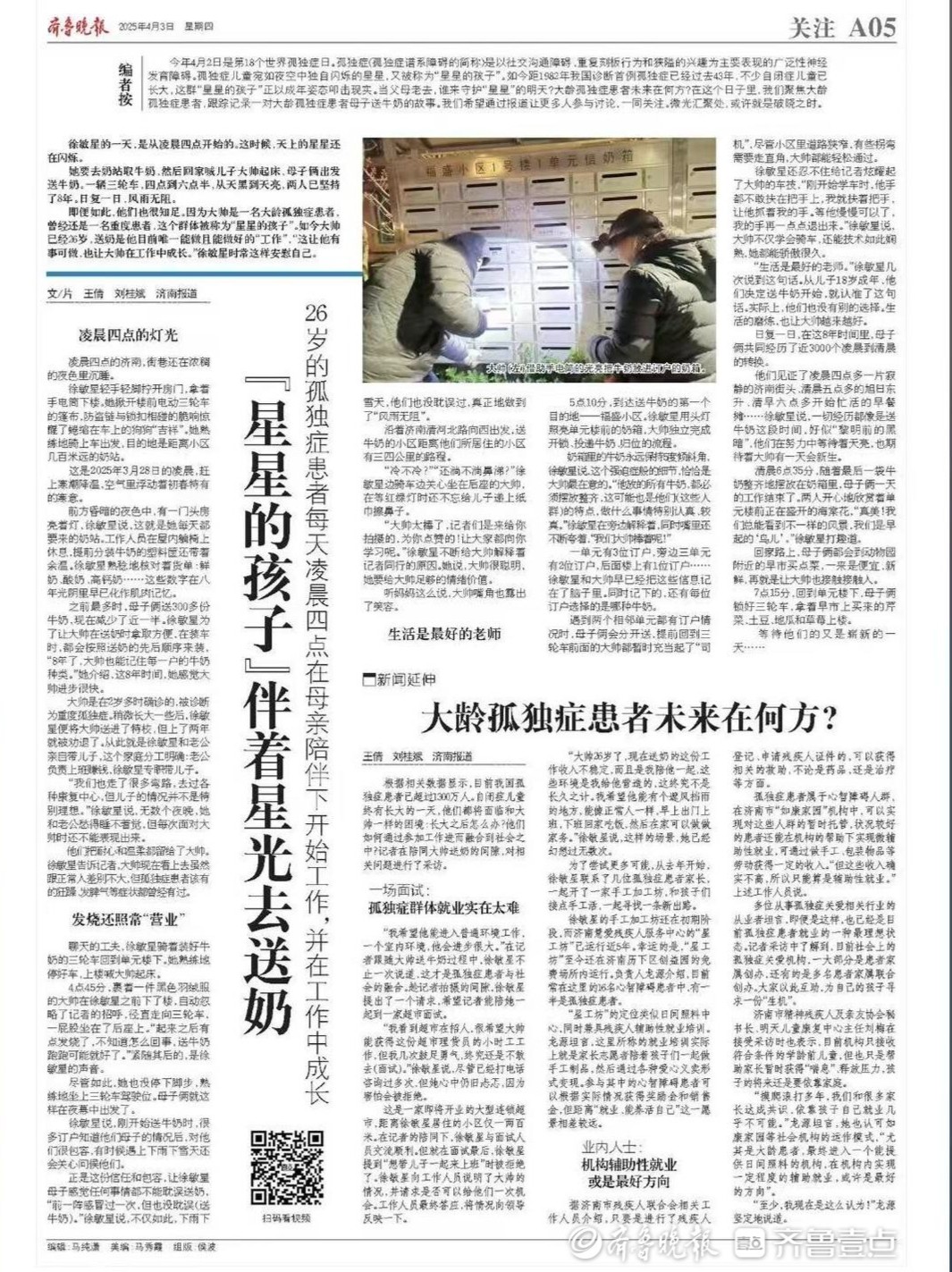“虽然我们一直在媒体的关注下成长,但去年你们的特别报道,让我们获得了更多关注。”元旦刚过,坐在公益手工坊桌前的徐敏星说。她提到的特别报道,就是壹点公益在2025年孤独症日期间推出的《凌晨四点的送奶工》报道,记者跟踪记录了这对母子凌晨送奶的日常。