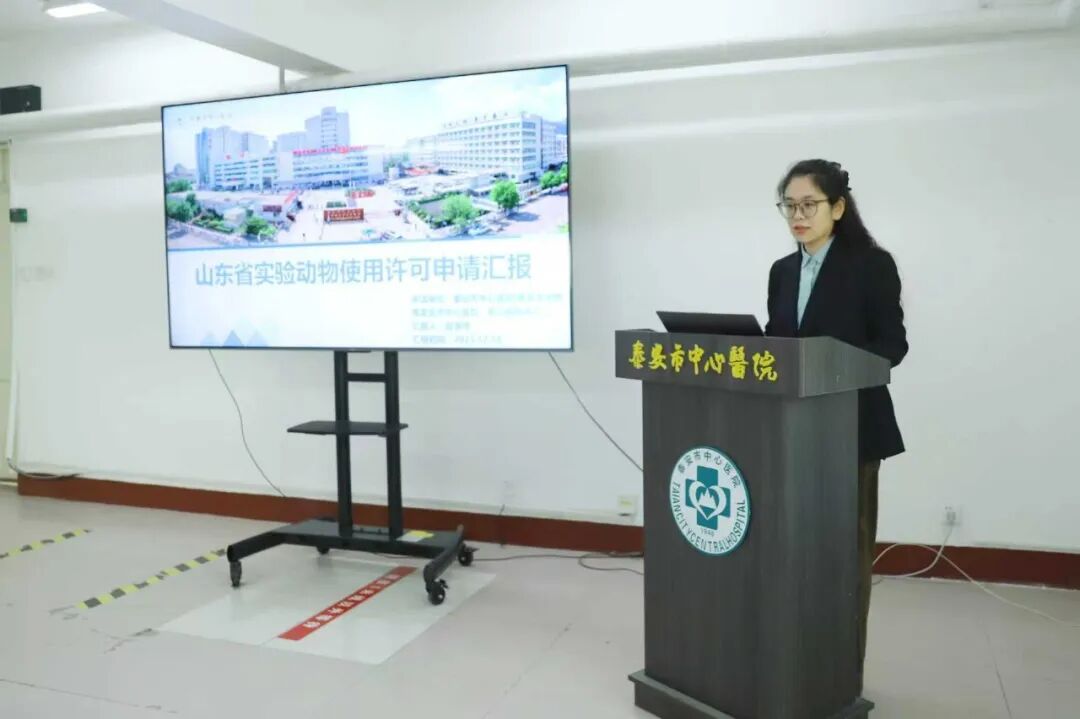 泰安市中心医院临床实验中心负责人薛敬伟围绕《实验动物使用许可证》相关要求,从单位概况、平台整体布局、规章制度管理、人员资质培训等方面系统汇报了动物实验中心的建设情况。
