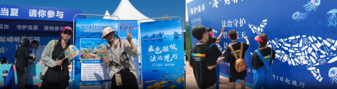 牟平区以养马岛音乐节为平台,推动多部门联动,将场景化、沉浸式法治服务深度融入大型文旅活动。区委宣传部、区司法局紧扣“法行万里海 德润四海心”主题,在音乐节入口精心设置“保护海洋 ‘海’好有我”签名倡议墙,吸引逾万人次打卡互动,并通过发放数千把融入了法治元素的文创宣纸扇、现场讲解《海洋环境保护法》新亮点等方式,巧妙引导乐迷树立生态文明理念,实现普法宣传与潮玩体验的有机结合。