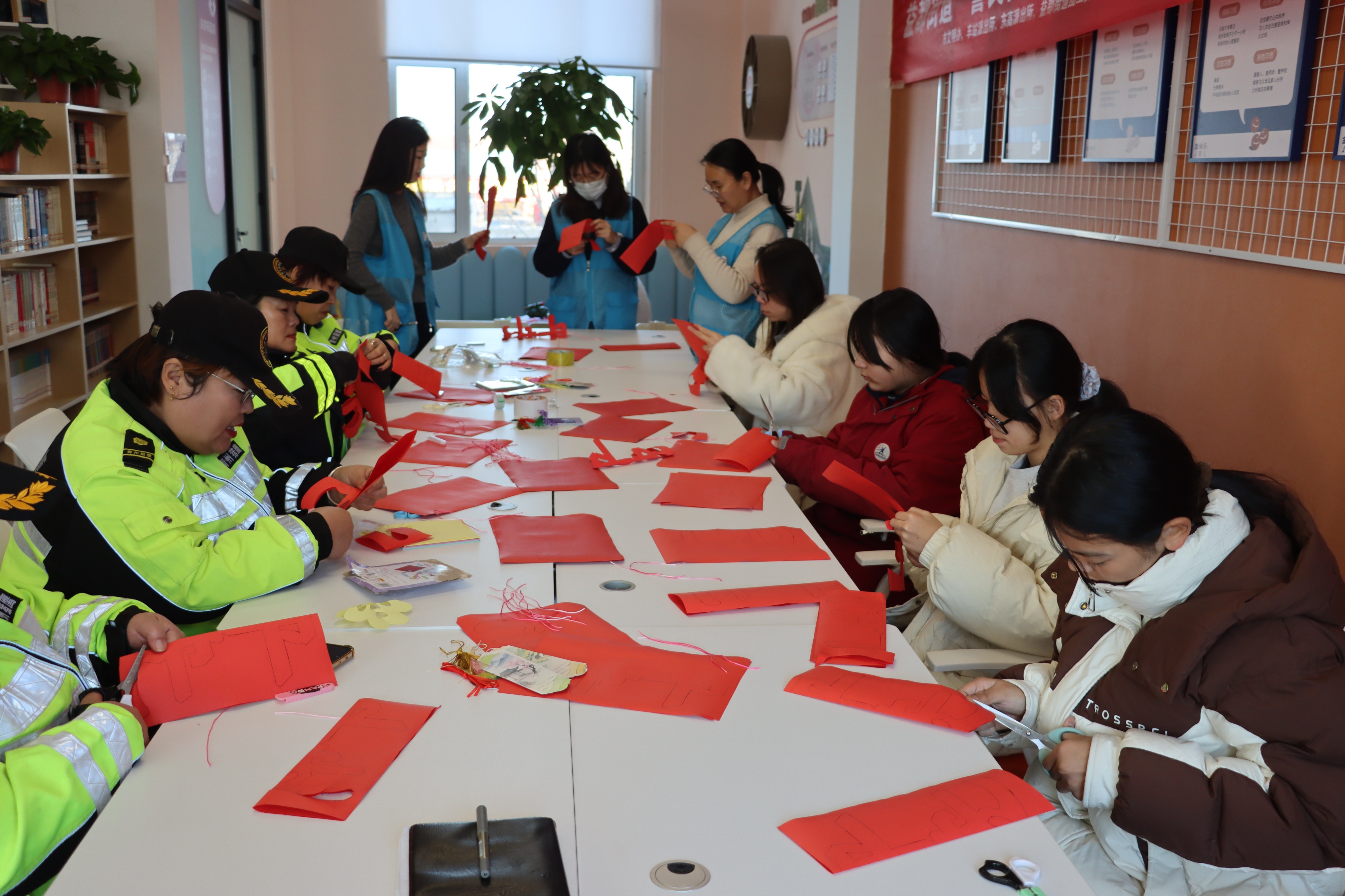 不仅如此,活动还提供了各类喜闻乐见、便民惠民的实践服务,将“理论课堂”与“生活场景”生动融合,让文明实践走深走实。在北海社区二楼观海书院,警民正在一起创作反诈主题剪纸、平安千纸鹤,理论在文化体验中无声浸润。另一方面,现场精心设置了“警民共建平安集市”,整合开设法律咨询、社保解读、卫健服务、矛盾调解等8个便民服务摊位,提供“一站式”解决方案。活动现场累计发放宣传资料300余份,解答各类政策咨询、提供惠民服务120余人次,“理论+文艺+服务”的特色宣讲模式更加入脑、入心,广受群众好评。
