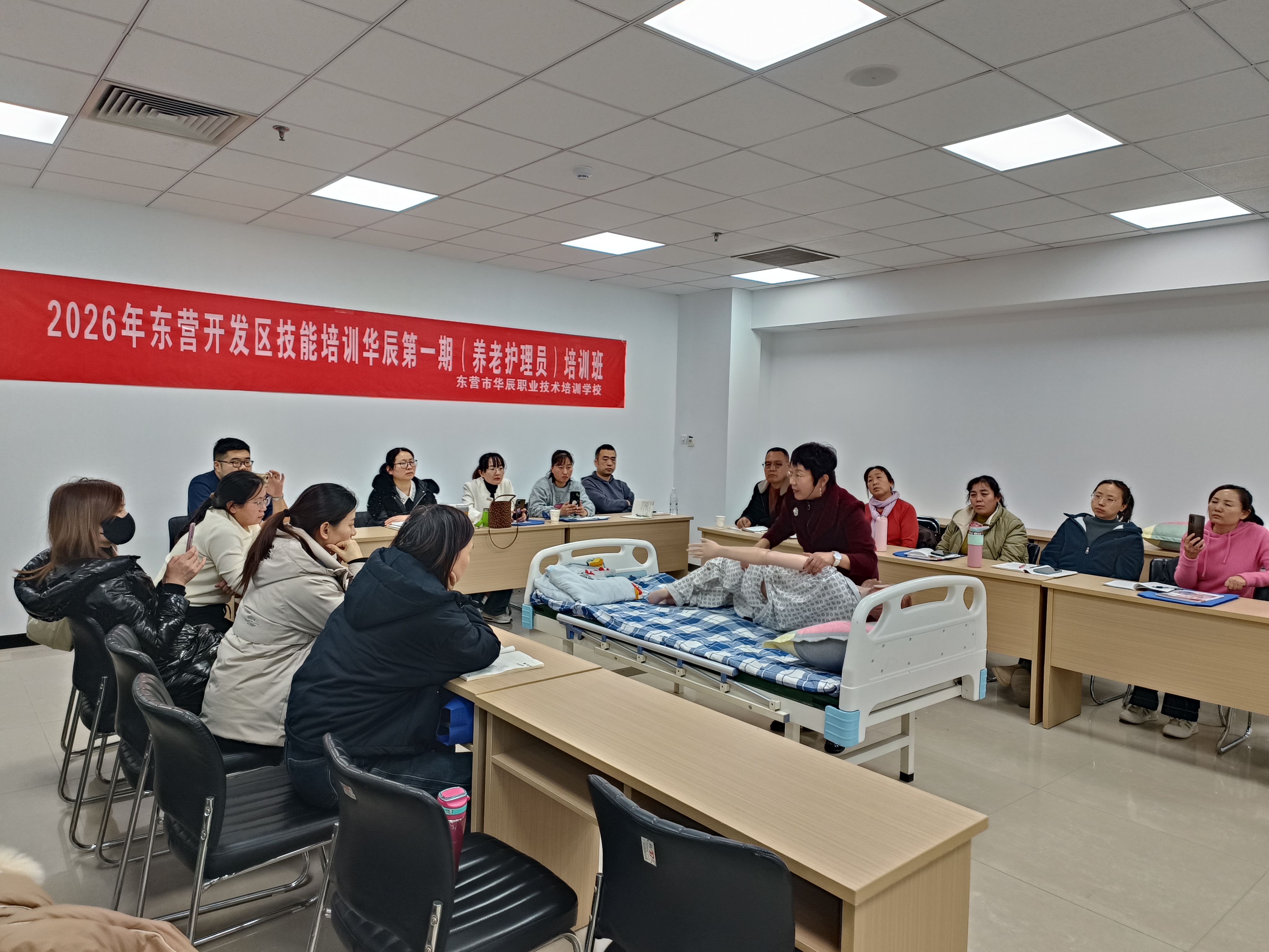 数九寒冬,东营经济技术开发区华辰培训学校的教室里暖意融融。15名学员围坐在一起,专注聆听老师讲解,近距离观摩实操。在老师通俗易懂讲解与逼真模型演示的配合下,专业的养老护理知识变得直观可感、容易掌握。这样一场精品小班培训,正为全国缺口超过500万的养老行业,培养了一批接地气、上手快的实用型人才。
