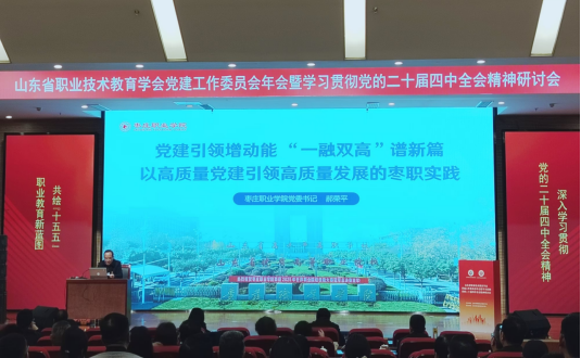 近日,山东省职业技术教育学会党建工作委员会年会暨学习贯彻党的二十届四中全会精神研讨会在济南召开。枣庄职业学院党委书记郝荣平在会上作典型发言,学院党委副书记张华伟、系(院)党(总)支部书记代表参加会议。