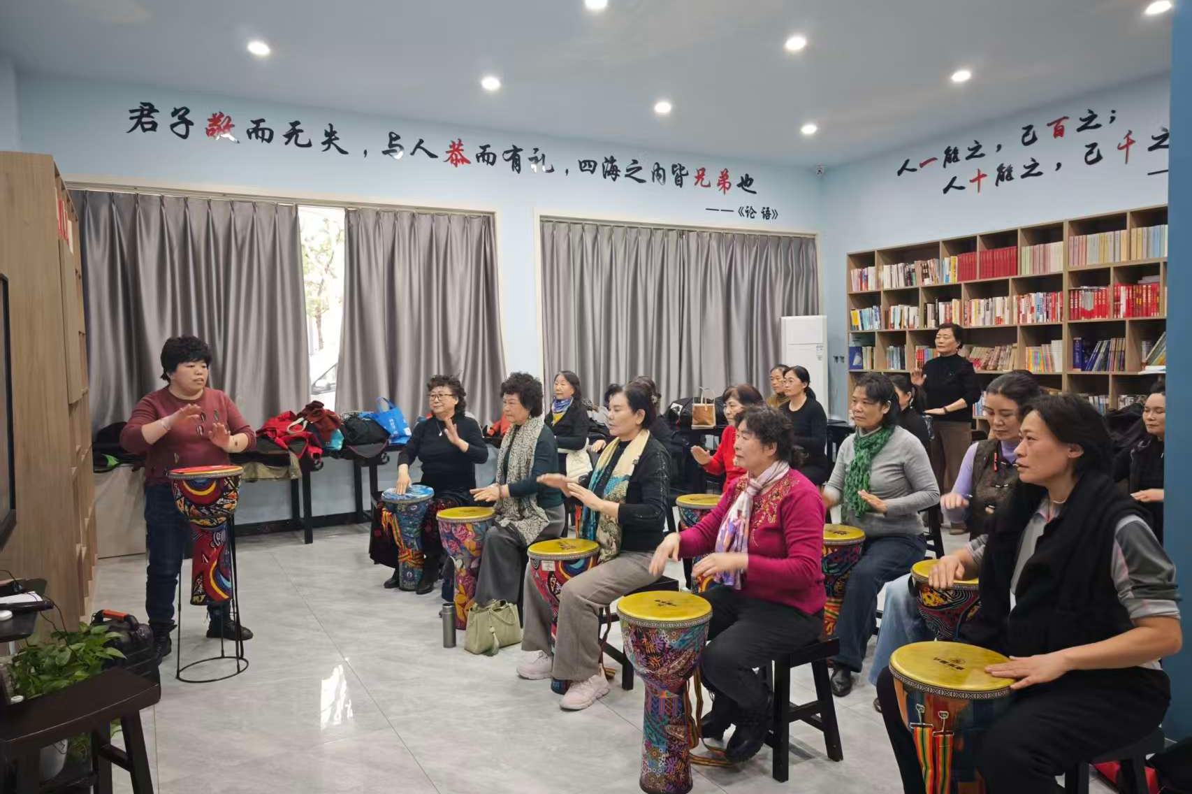 【文化社区·樱学善行】滕州龙泉街道樱花苑社区新时代文明实践站开展樱韵鼓风社团非洲鼓公益训练活动