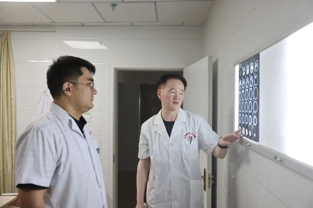 麦盖提县人民医院援疆医生教本地医生看片子。喀什地区融媒体中心 余思民 摄