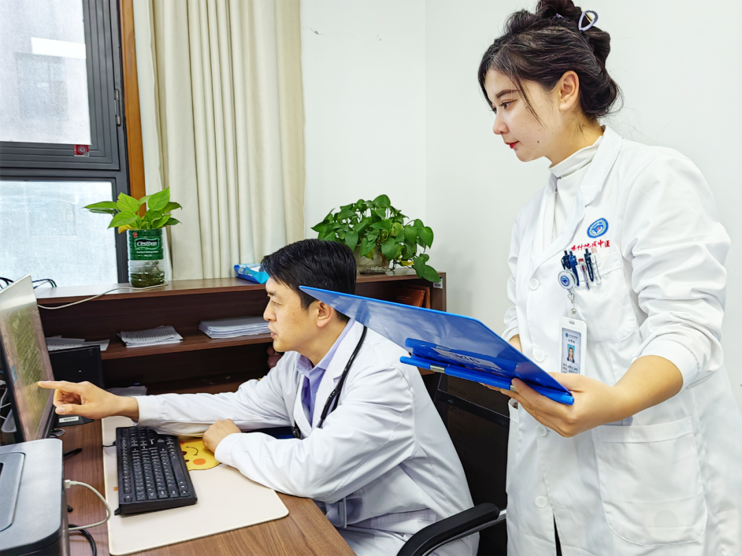 喀什地区中医医院呼吸科医生李道卫在与科室同事讨论交流。(资料图)喀什地区融媒体中心 记者雷木果 摄