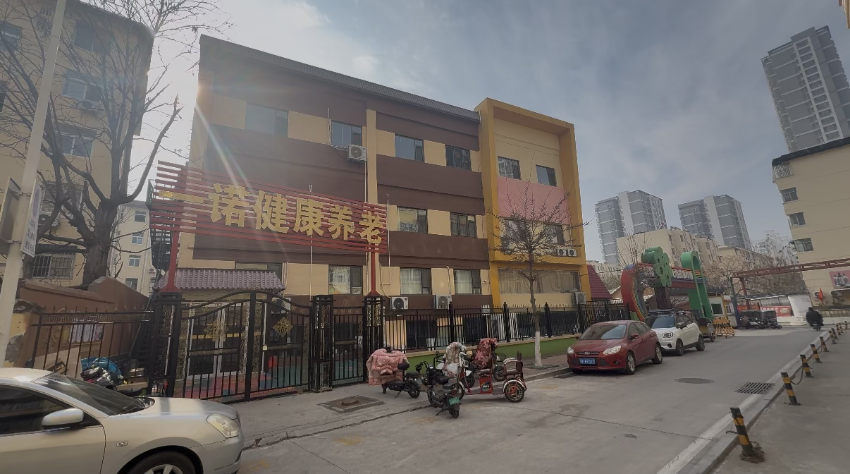 位于济宁市任城区济阳街道辖区内的这所幼儿园,是一方独立小院,院内一幢4层小楼一分为二,一侧是“一诺健康”养老院,另一侧是幼儿园。院落周边有3个社区、多所医院,周边有8000余名老人存在养老需求。