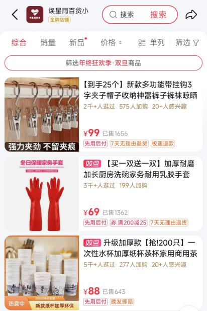 记者点进抖音某商家店铺主页,里面商品价格与销量令人咋舌:25个小夹子售价99元,已售1656;两双乳胶手套售价69元,已售1362……对比其他购物平台,价格得高十倍。