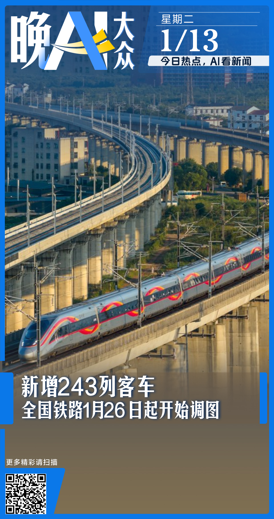 记者从国铁集团获悉,1月26日零时起,全国铁路将实行新的列车运行图。调图后,全国铁路安排图定旅客列车12130列,较现图增加243列,开行货物列车23748列,较现图增加177列。详情>>