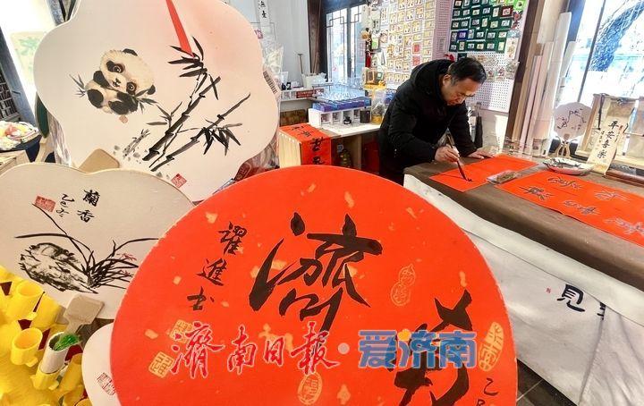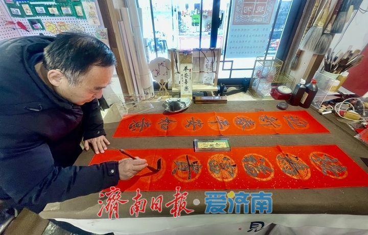 1月12日,济南百花洲已悄然披上节日盛装。随着腊月临近,沿街商铺纷纷挂起彩灯,手写春联,为即将到来的春节增添传统韵味。不少游客漫步青石板路,在红灯笼与翰墨清香中拍照打卡,提前感受渐浓的年俗氛围。