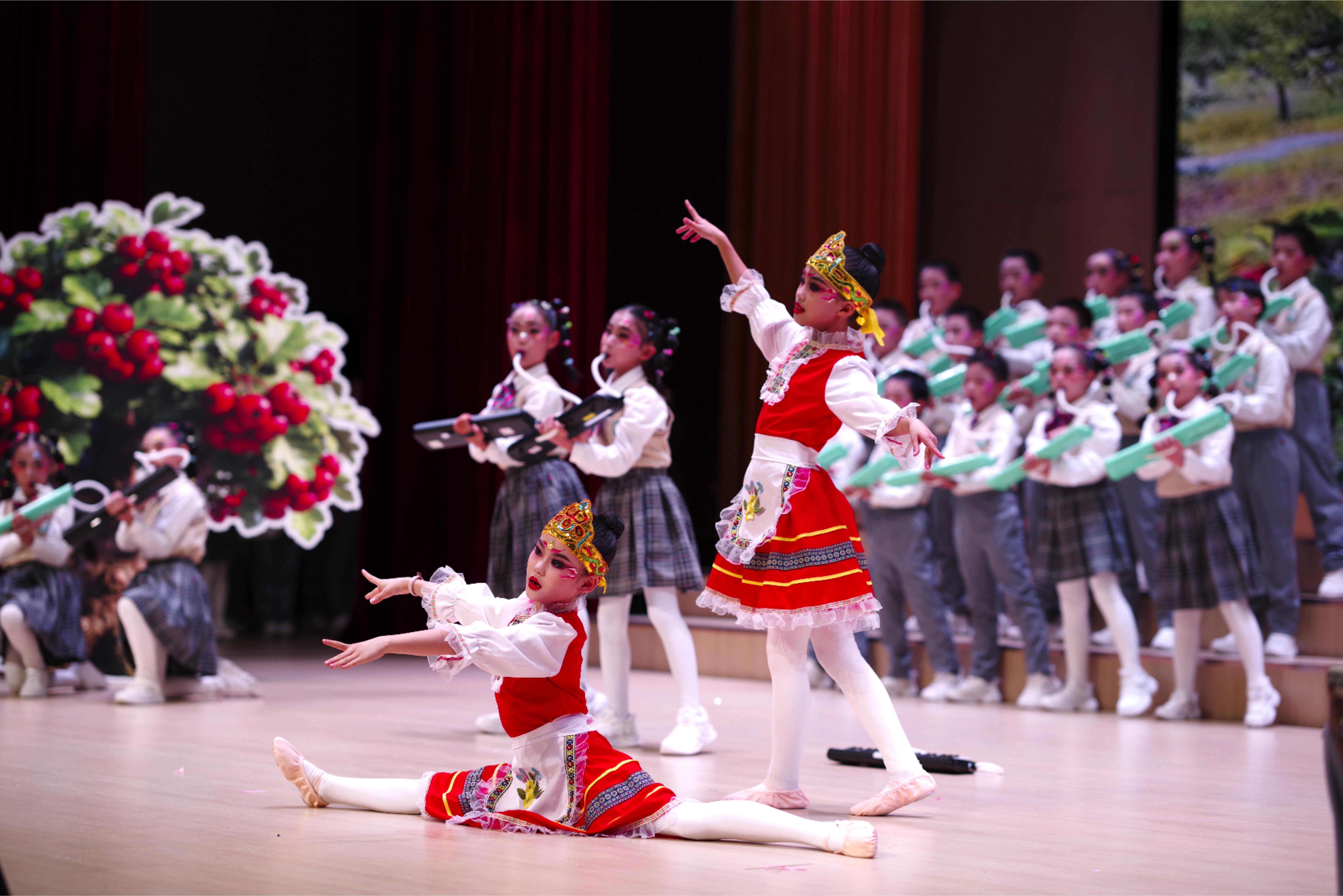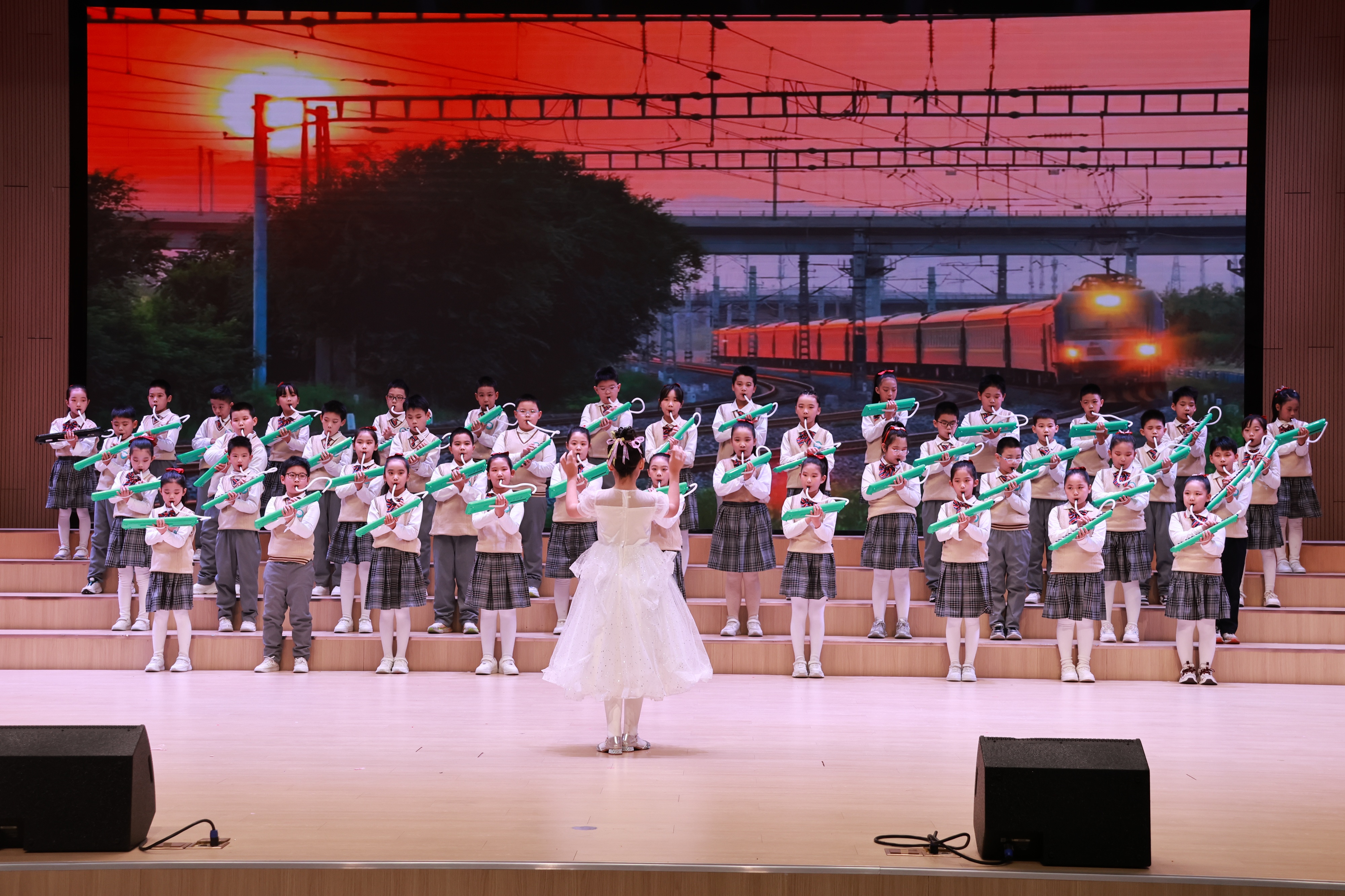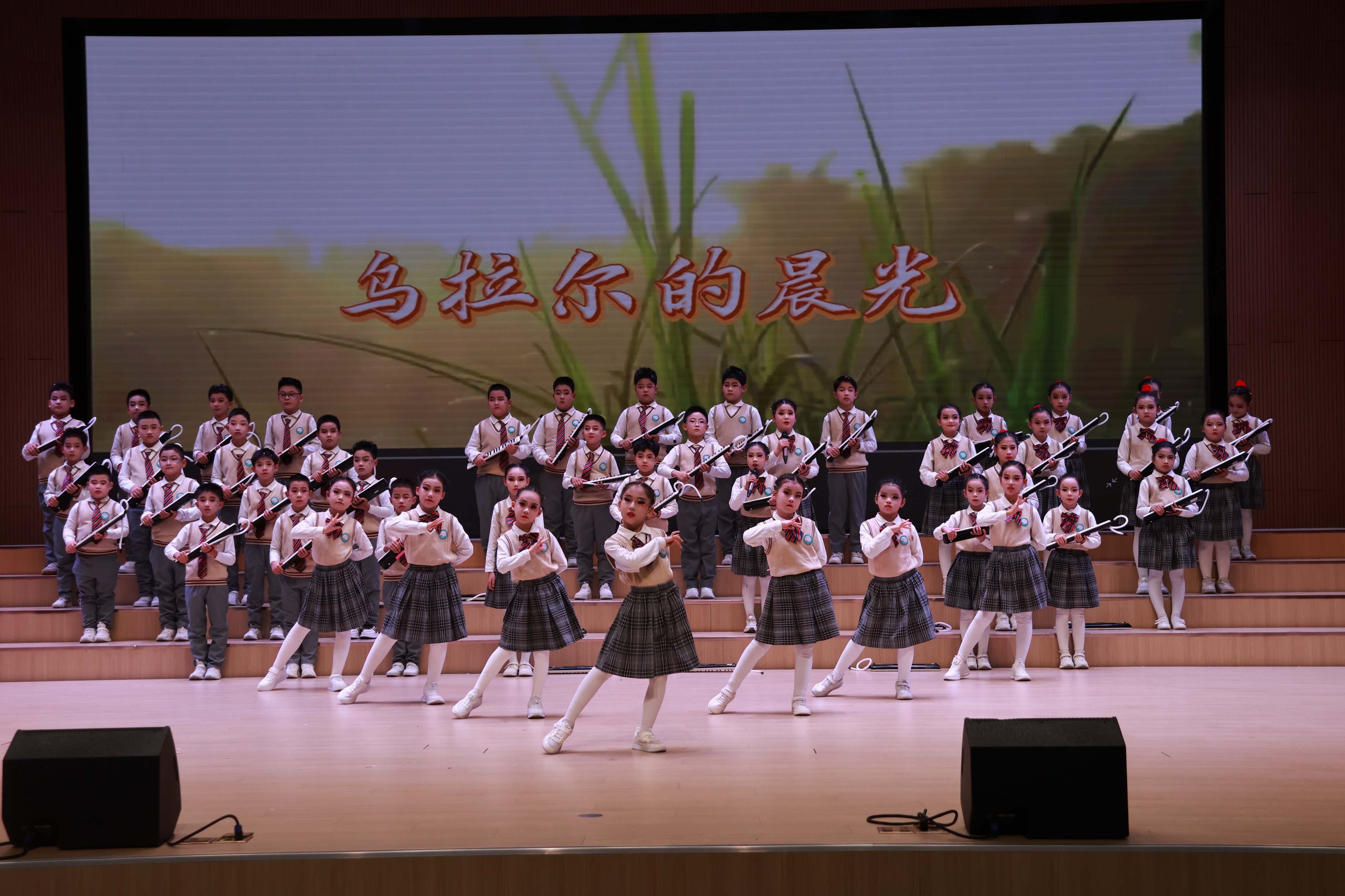 专场一的班级堪称“创意先锋”,统一整洁的服饰搭配精心编排的情境表演,让《乌拉尔的晨光》焕发新活力。部分班级大胆加入多种辅助乐器,声部层次丰富,感染力十足。专场二的班级以“稳”取胜,演奏节奏整齐划一,学生们精神饱满、台风端正,用默契的协作展现了班级凝聚力,让观众沉浸式感受音乐的纯粹力量。专场三的班级尽显童真风采,演奏中,学生们以饱满的精神状态投入表演,简单的编排里藏着纯粹的热爱,虽没有过多创意点缀,却用真挚的情感和规范的姿势,诠释了对音乐的理解,赢得阵阵掌声。