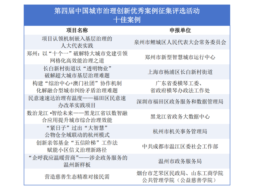 芝罘区民政案例入选“第四届中国城市治理创新十佳案例”