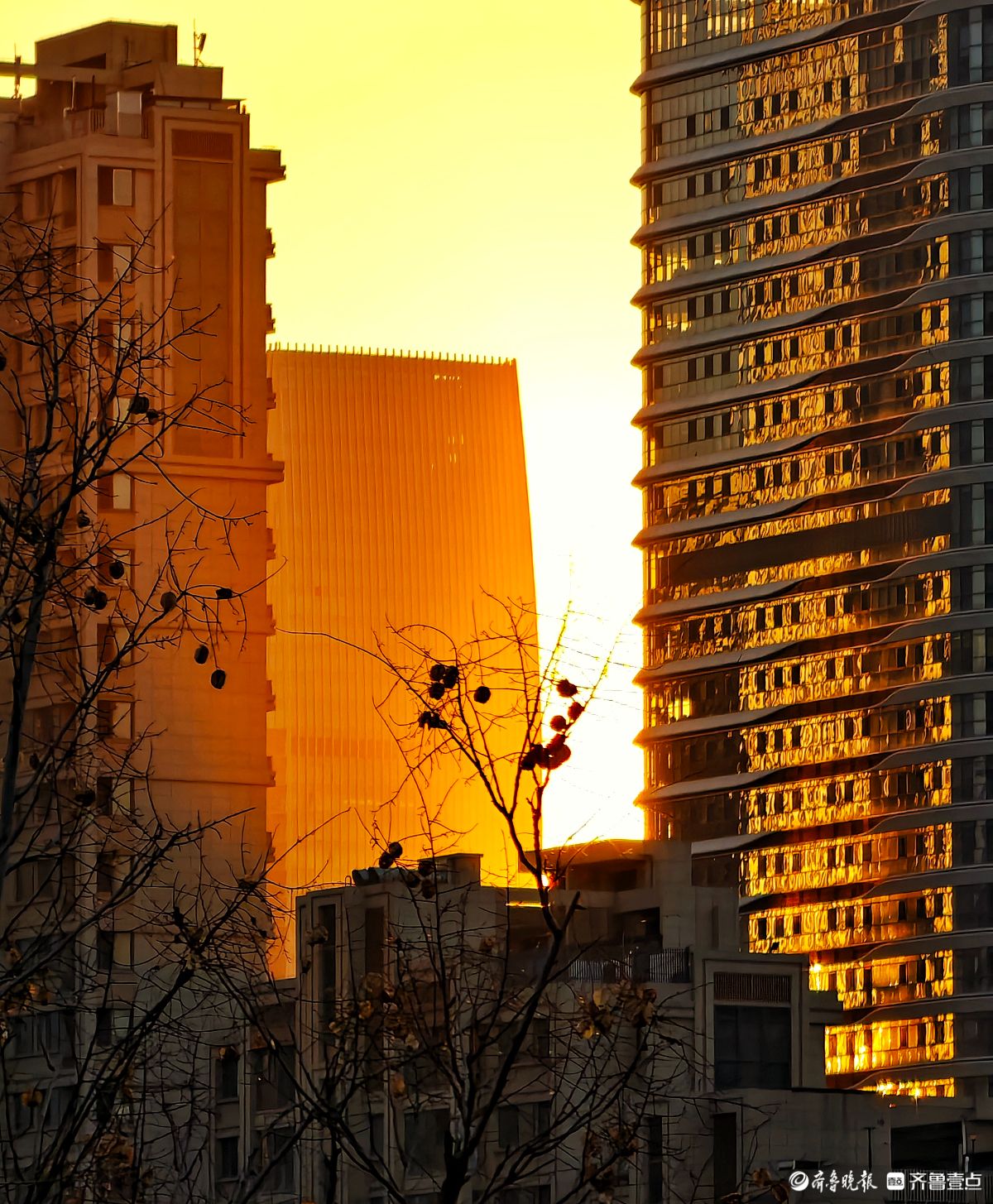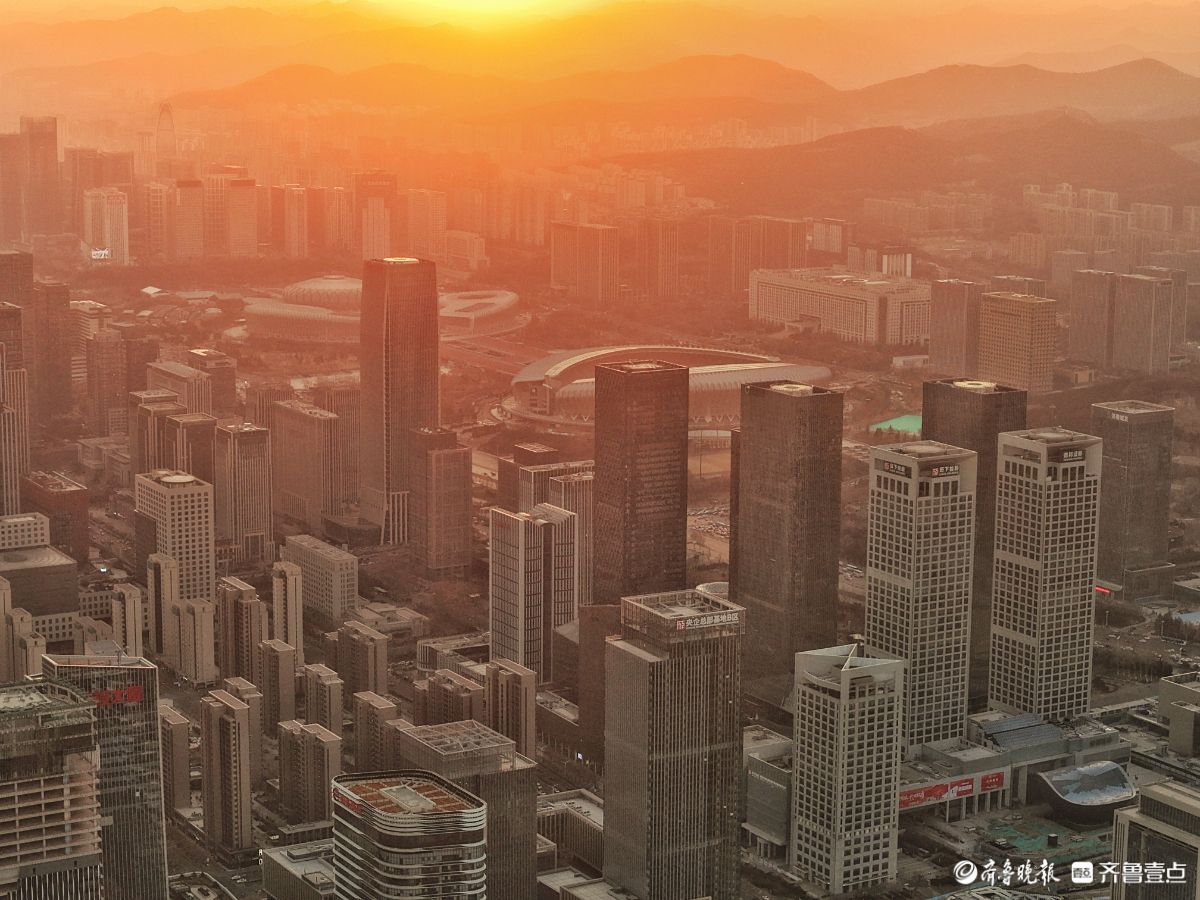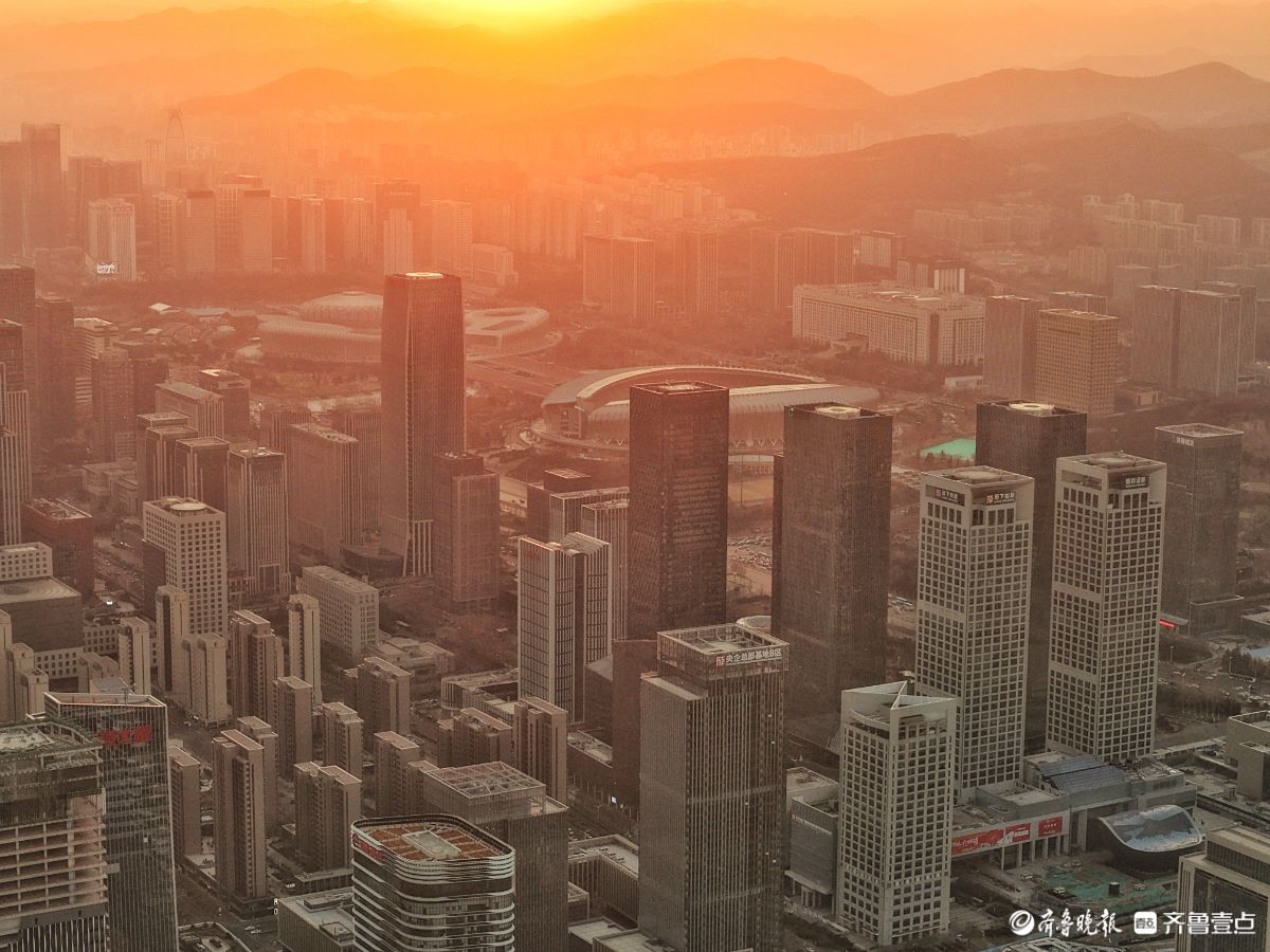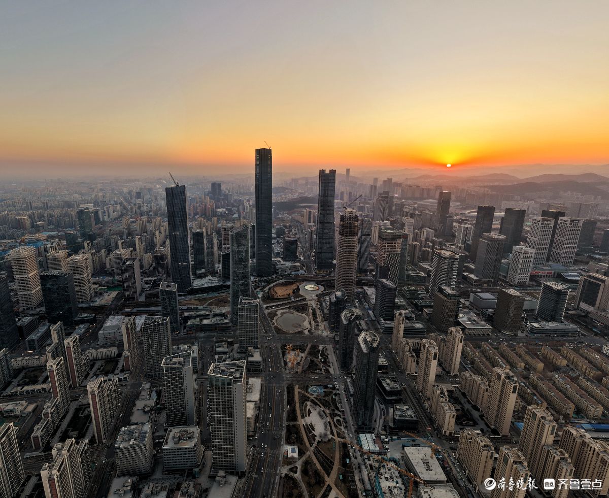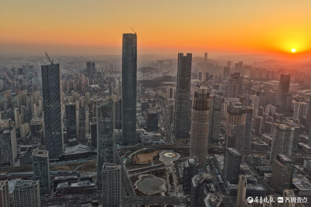 济南中央商务区的瑰丽日出