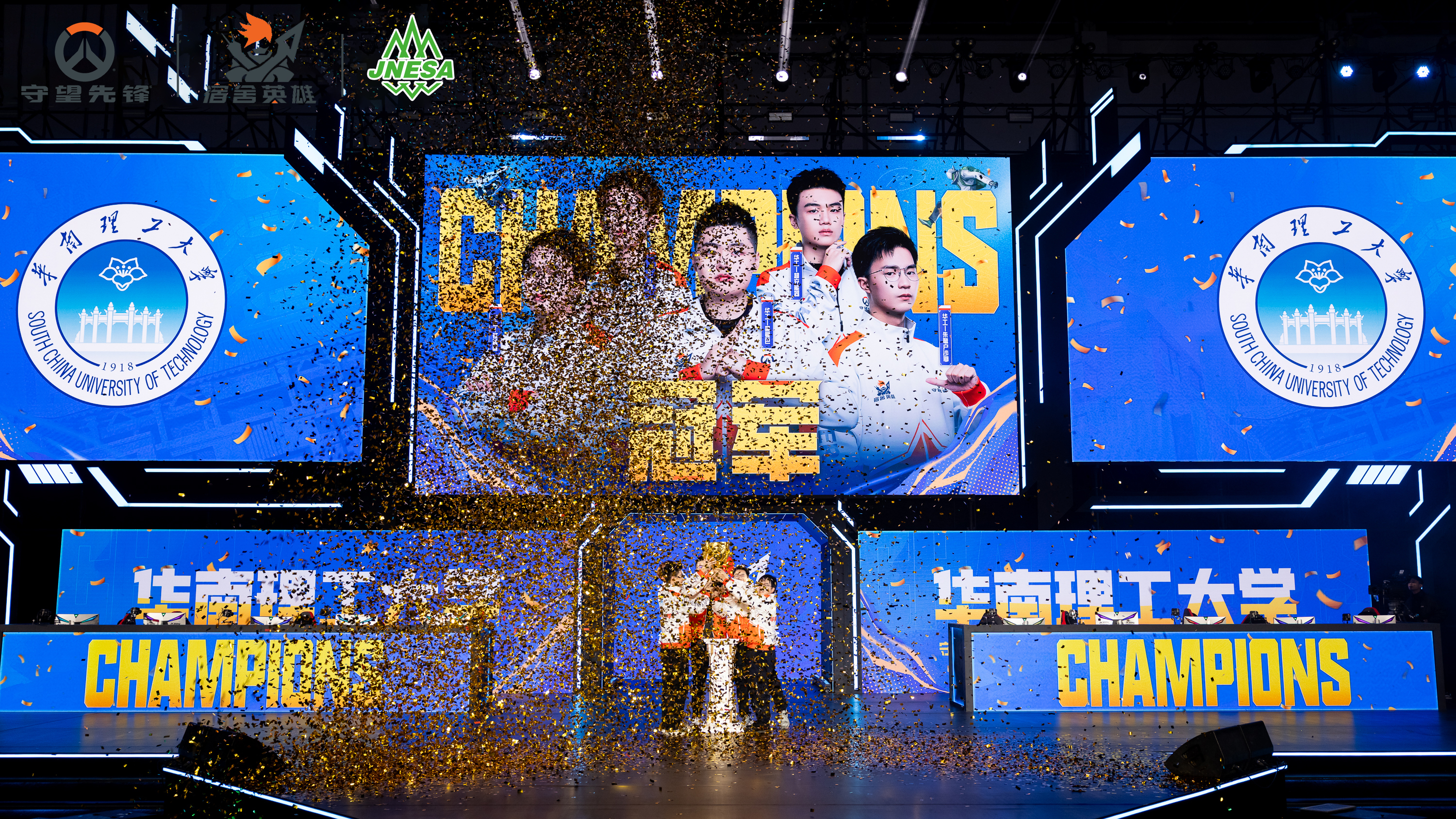 经过两天的激烈比拼,赛事冠军揭晓:《炉石传说》标准模式冠军由浙江工商大学摘得,战棋模式冠军归属杭州电子科技大学,两支高校战队用实力诠释“炉石学霸”的硬核实力;《守望先锋》的巅峰对决,华南理工大学战胜湖南大学赢得赛事奖杯,两队的精彩表现也让现场与线上观众沉浸式感受到了高校电竞的热血与激情。