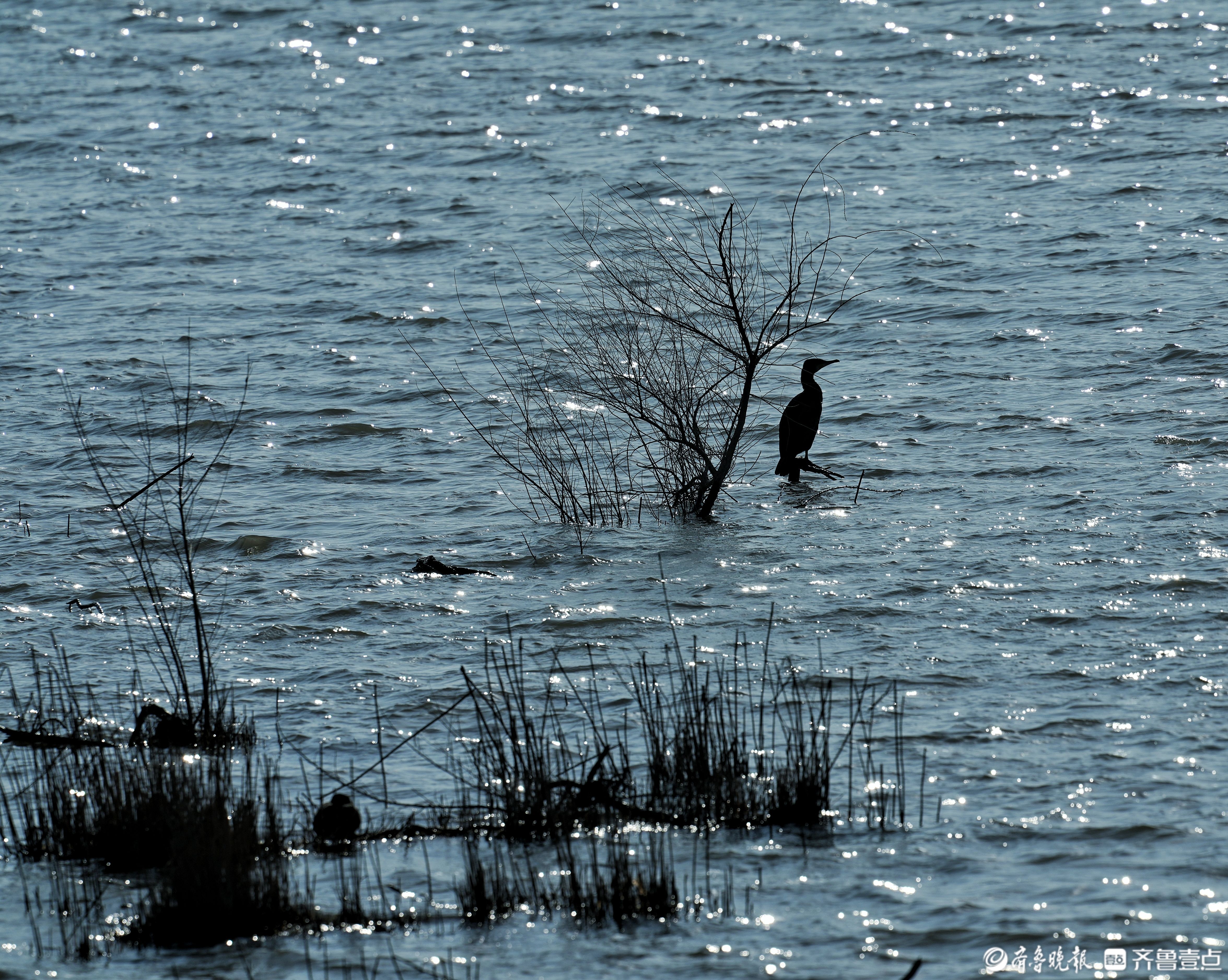 济南鹊山水库南范村沉沙池,静静的鸬鹚