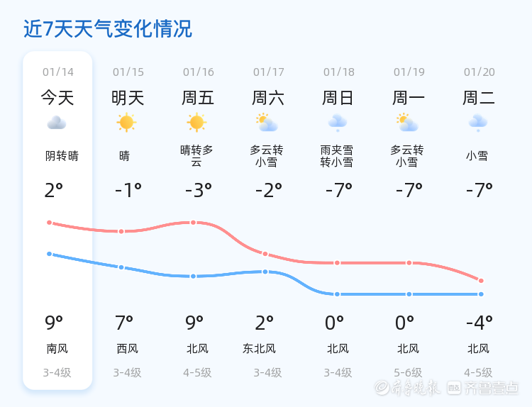 明日天气将迎来变化,威海市将以晴天为主,气温有所下降,最低气温将降至-1°C,最高气温为7°C。与今日相比,明日的气温明显降低,市民需注意保暖。