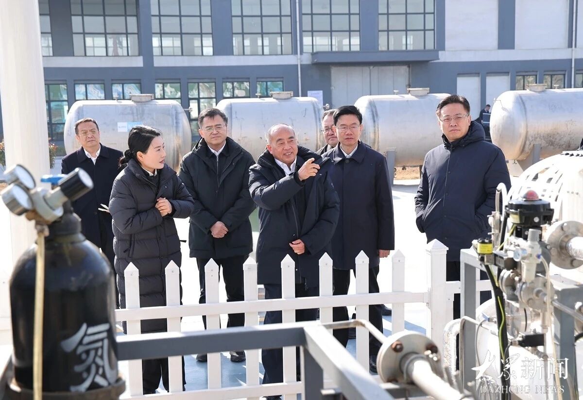 在热耦合海水直接电解制氢关键技术研发与示范项目、山东蓝昆氢能绿氢装备智造项目现场,林武察看110千瓦级热耦合海水直接电解制氢系统装置、方形常压电解槽及电解水制氢装置,了解氢能领域科技创新及成果转化情况。他指出,要完善产学研协同创新机制,加快科技成果高效转化应用,加强氢能核心装备技术研发制造,以科技创新引领新质生产力发展,更好助力“双碳”战略实施。
