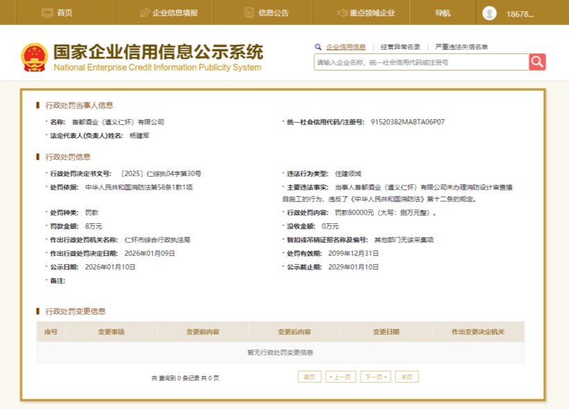 国企子公司也“踩红线”?首都酒业(仁怀)公司涉消防违法被处罚