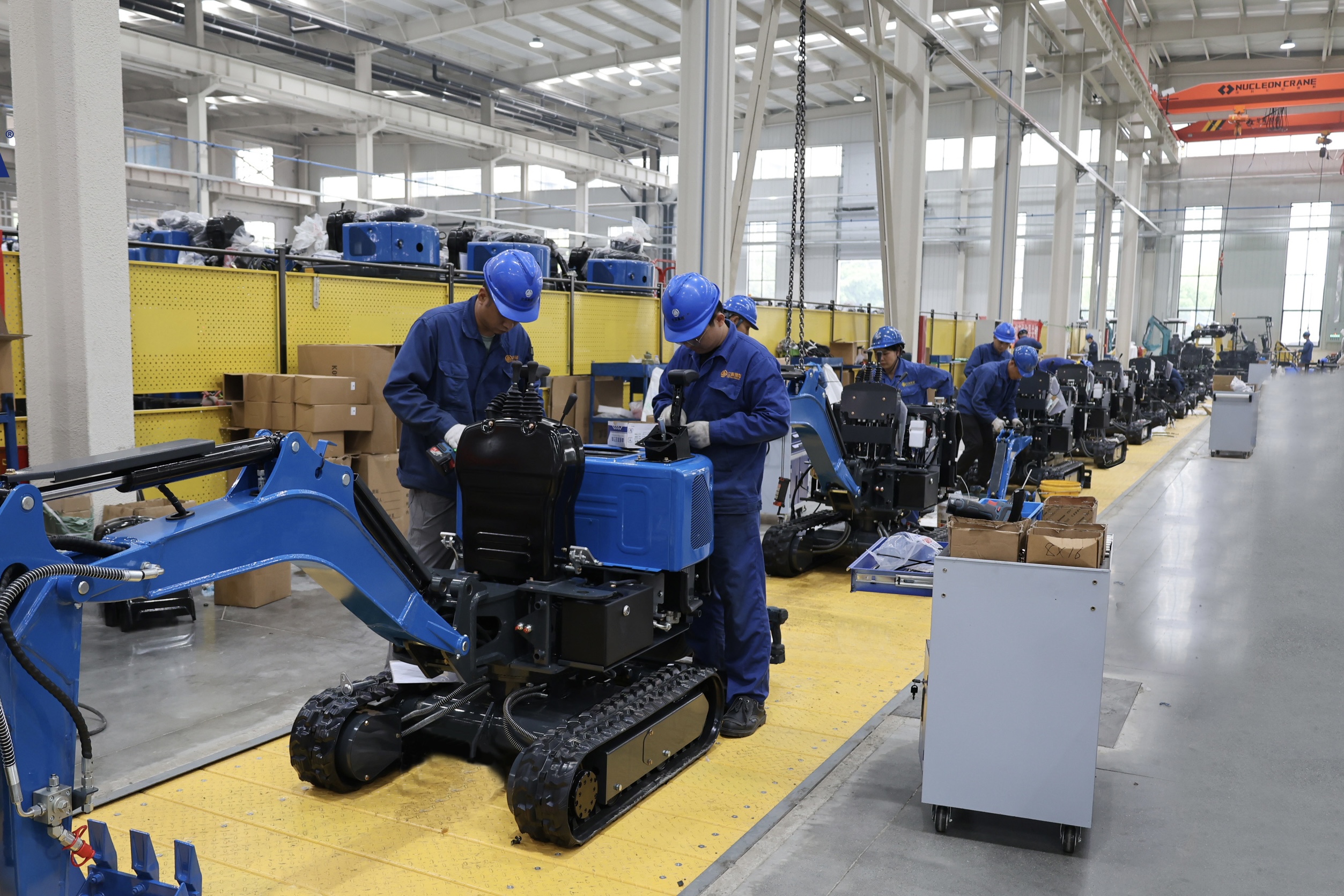 走进立派机械的生产车间,机器轰鸣交织成繁忙的生产交响曲。各条生产线高效运转,工人们专注地进行配件组装、精准调试,每一道工序都井然有序,处处洋溢着争分夺秒的实干氛围。“我们深耕小型挖掘机系列产品研发生产,核心市场聚焦欧洲与美国,2025年销售额已突破14亿元。”山东立派机械集团有限公司副总经理高升涛介绍,经过多年深耕,企业已成长为山东省挖掘机行业的龙头标杆,产品与服务网络广泛覆盖中国大陆、欧美、澳洲、非洲等多个地区。