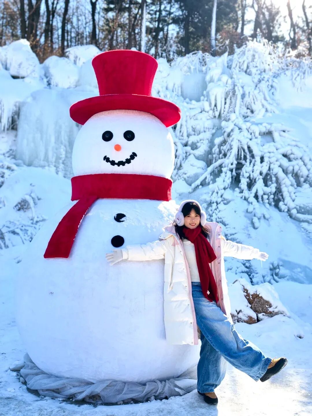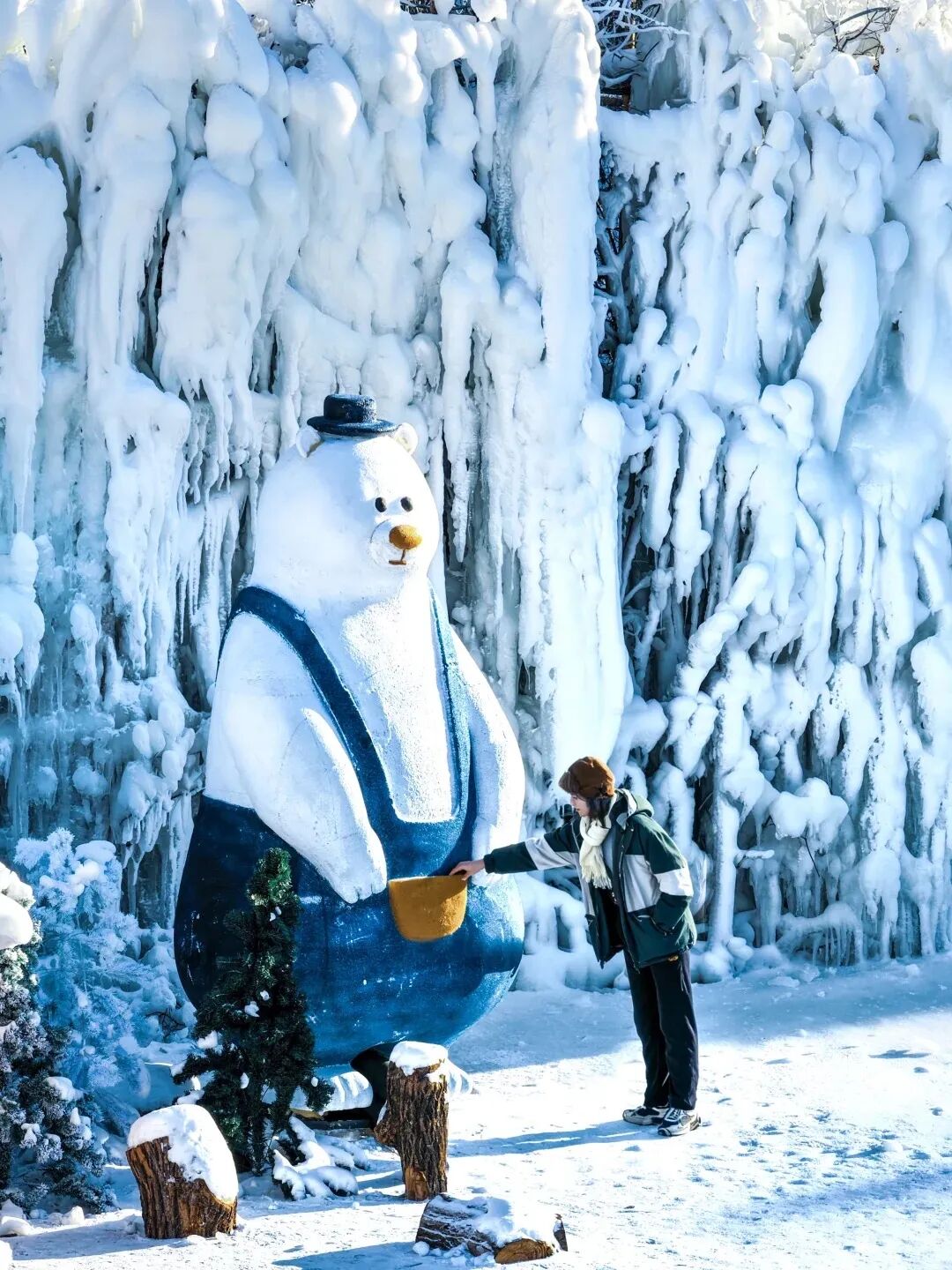 冰森幻境:巨型雪人+呆萌白熊+雪屋背景,妥妥的冬日童话现场。