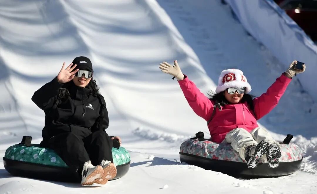 魔法乐园区:核心区域精心打造了约5000平方米的嬉雪乐园,设有多条滑雪道、雪圈滑道及各类雪地互动项目,并点缀以景区特色IP“LULU熊”、憨态可掬的大雪人等趣味装置,构建全龄段畅玩的欢乐天地。