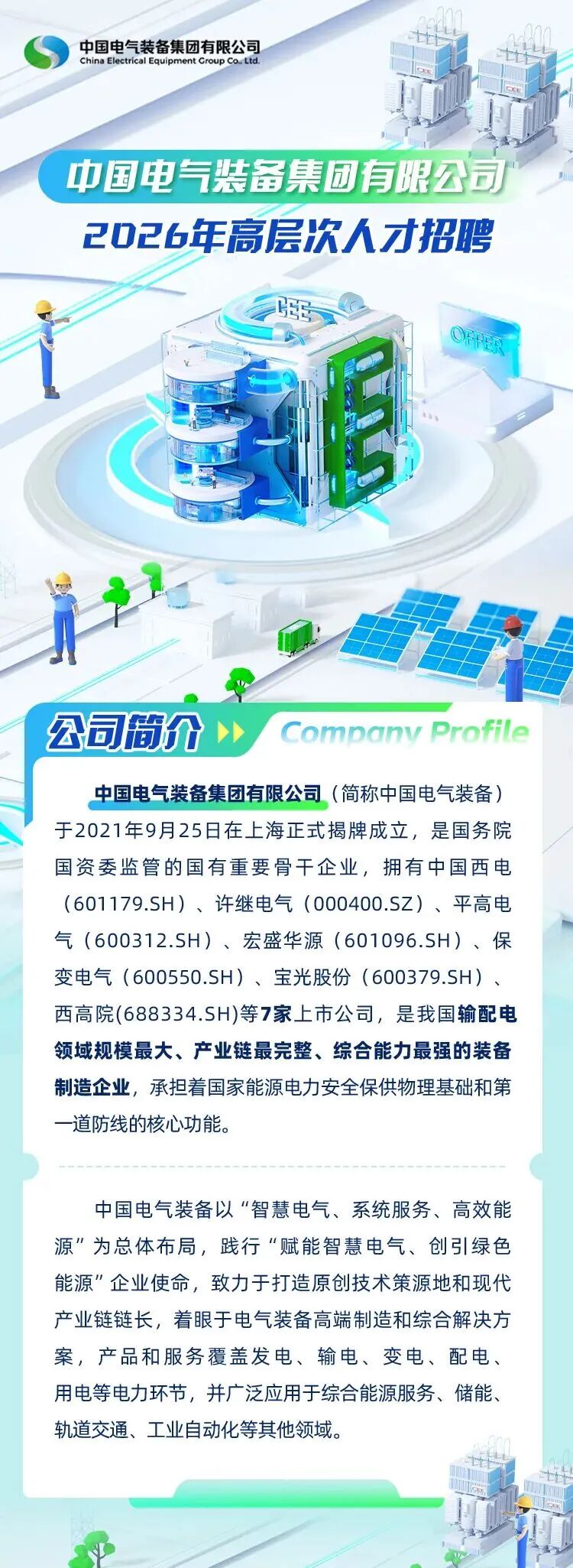近日,记者从济南市人社局了解到,中国电气装备集团有限公司正面向社会公开招聘,此次招聘在济南设有相关岗位,应聘者可通过PC端(https://ideal.51job.com/CEE-SZ-2026)报名,也可以通过手机端扫描二维码投递简历。具体招聘公告如下:大众新闻·齐鲁壹点赵子喆通讯员王帅