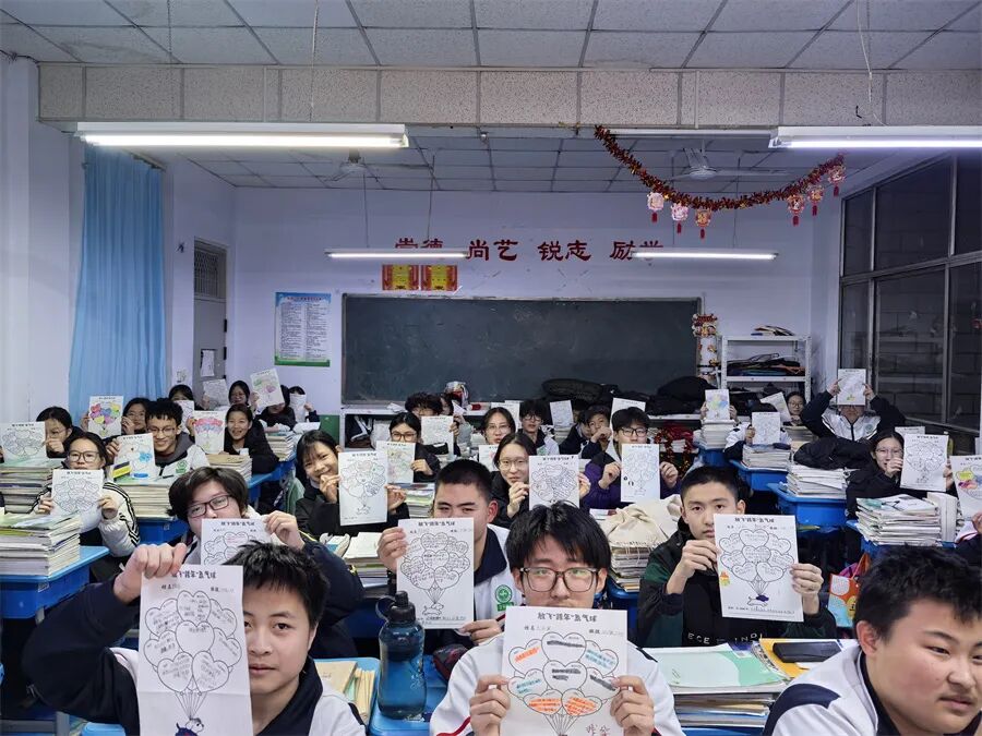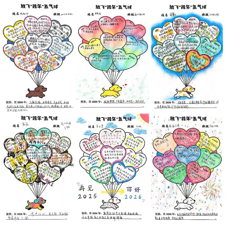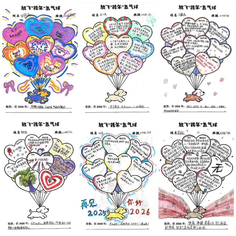 完成个人“气球”制作后,同学们互相交流成长故事,并为彼此写下真挚的新年祝福:“祝你2026学业顺利”“天天开心”……这些简短的祝福语承载着同窗情谊,也为每个人的新年注入温暖力量。