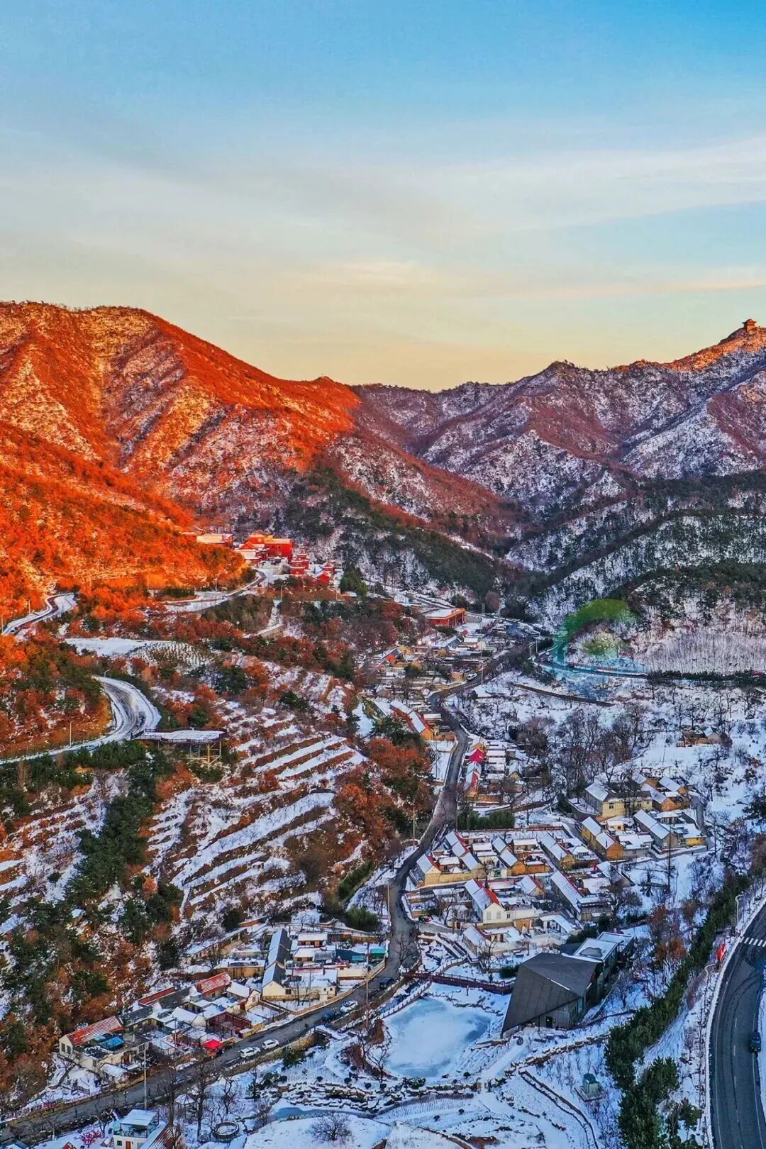 一场雪过后,里口山仿佛世外桃源,雪后的村落错落有致,散落在山下各处。
