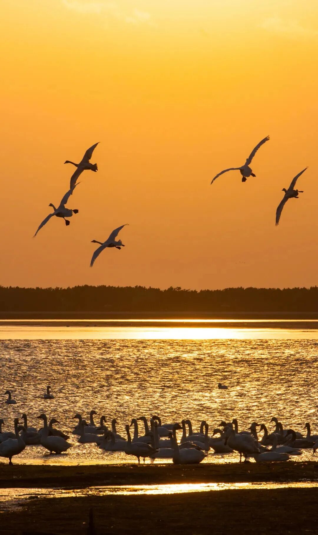 这里的独特之处在于,天鹅与古朴的海草房同框,你可以沿着湖边漫步,近距离观赏天鹅展翅、戏水的姿态,感受人与自然和谐共生的美好。