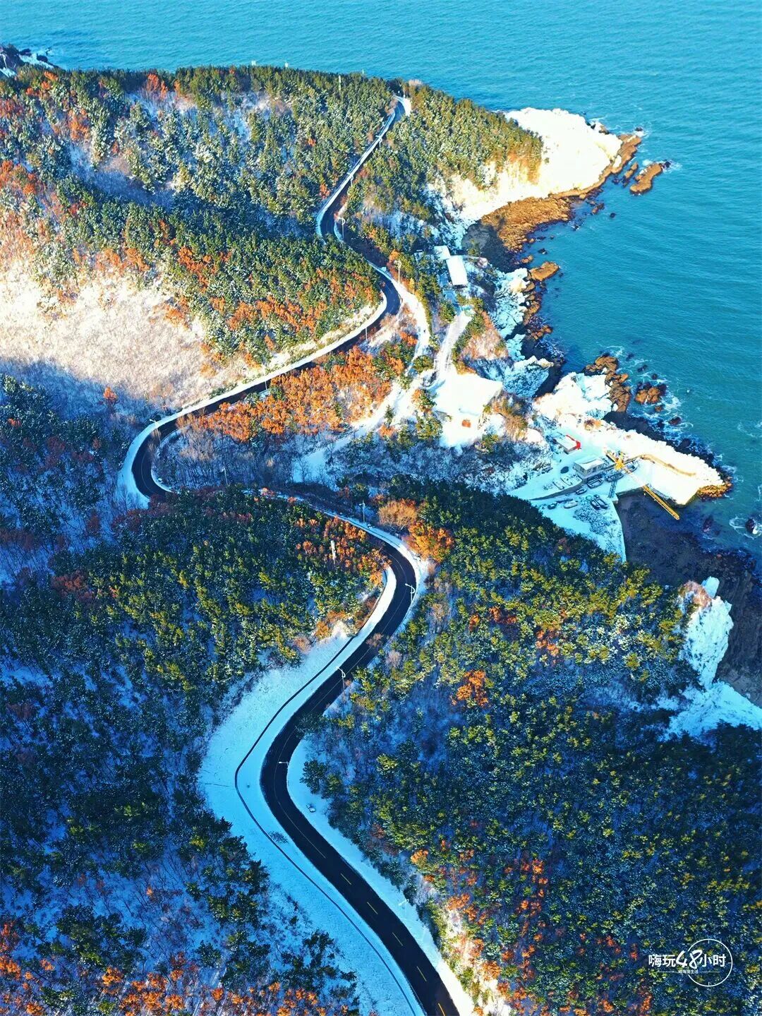 环海路是威海雪景的精华所在,冬日雪后,依山傍海的公路沿线银装素裹,一侧是覆雪的层峦叠嶂,一侧是湛蓝涌动的大海,雪花落在海面上瞬间消融,形成“一半纯白寂静,一半蔚蓝澎湃”的绝美画面。
