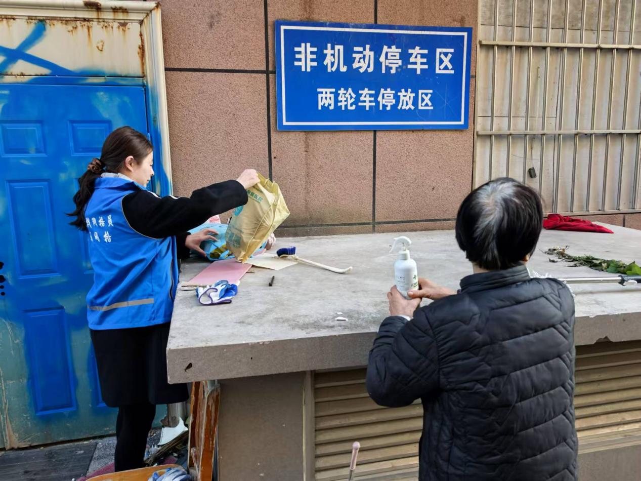 此次活动中,社区工作人员、退役军人志愿者与居民代表组成清洁队伍,对社区内的绿化带、楼道、公共通道、垃圾桶站等区域进行全面清理。大家手持夹子、扫帚、垃圾袋等工具,仔细捡拾白色垃圾、清理枯枝落叶,对长期积存的杂物进行集中清运。同时,针对楼道内顽固的小广告和斑驳墙面,畅通了“生命通道”,消除了安全隐患。