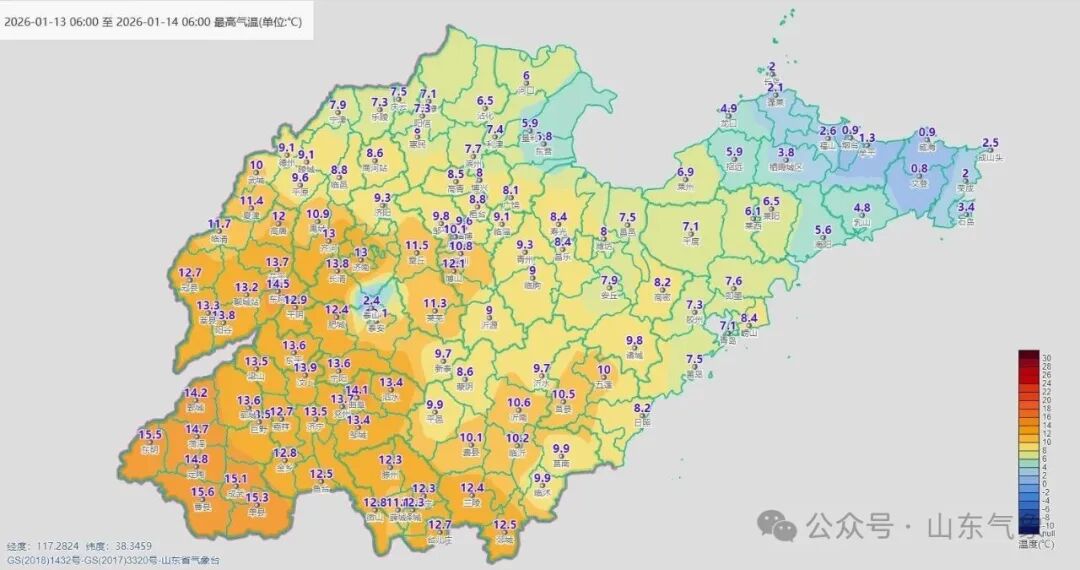今明天,我省晴好模式持续 “霸屏”,大部地区最高气温10~14℃,淄博、枣庄等地可达17℃。不过大家可别只顾着享受暖阳 —— 白天回暖势头虽猛,早晚气温依旧低迷,未来几天部分地区昼夜温差超15℃,妥妥上演 “一天穿越两季”。早出晚归的小伙伴,一定要记得及时添衣保暖,谨防着凉哦~16日较强冷空气报到